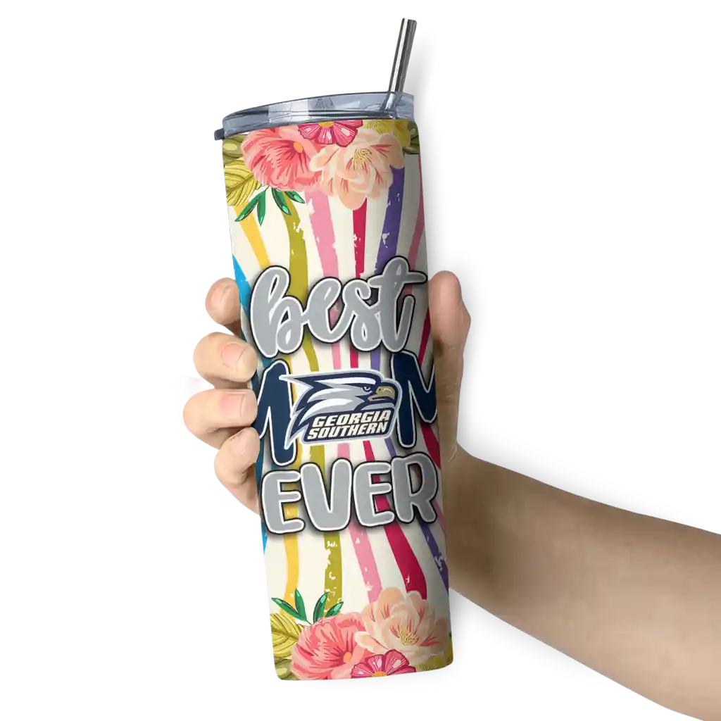 The Georgia Southern Eagles Flower Cluster Skinny Tumbler tumbler is the perfect way to stay refreshed while showing off your pride for Georgia Southern Eagles. With its double-wall insulation, your drinks stay at the right temperature for hours, whether you're enjoying a hot coffee or keeping your iced drink cold. What's inside? You’ll find 1 stainless steel tumbler, 1 clear lid, and 1 removable straw. It's the perfect blend of function and fan spirit! Ergonomically designed for comfort, made from durable stainless steel, and insulated to maintain your drink’s temperature, this tumbler is a must-have for any dedicated NCAA fan.
