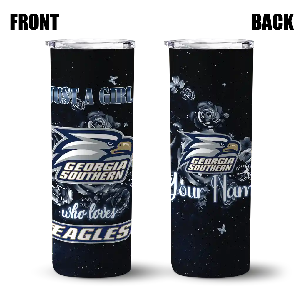 Personalized Georgia Southern Eagles Rose Romance Blue Black Skinny Tumbler