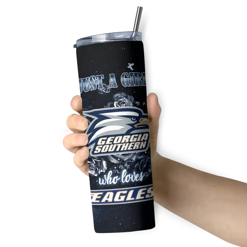 The Personalized Georgia Southern Eagles Rose Romance Blue Black Skinny Tumbler tumbler is the perfect way to stay refreshed while showing off your pride for Georgia Southern Eagles. With its double-wall insulation, your drinks stay at the right temperature for hours, whether you're enjoying a hot coffee or keeping your iced drink cold. What's inside? You’ll find 1 stainless steel tumbler, 1 clear lid, and 1 removable straw. It's the perfect blend of function and fan spirit! Ergonomically designed for comfort, made from durable stainless steel, and insulated to maintain your drink’s temperature, this tumbler is a must-have for any dedicated NCAA fan.