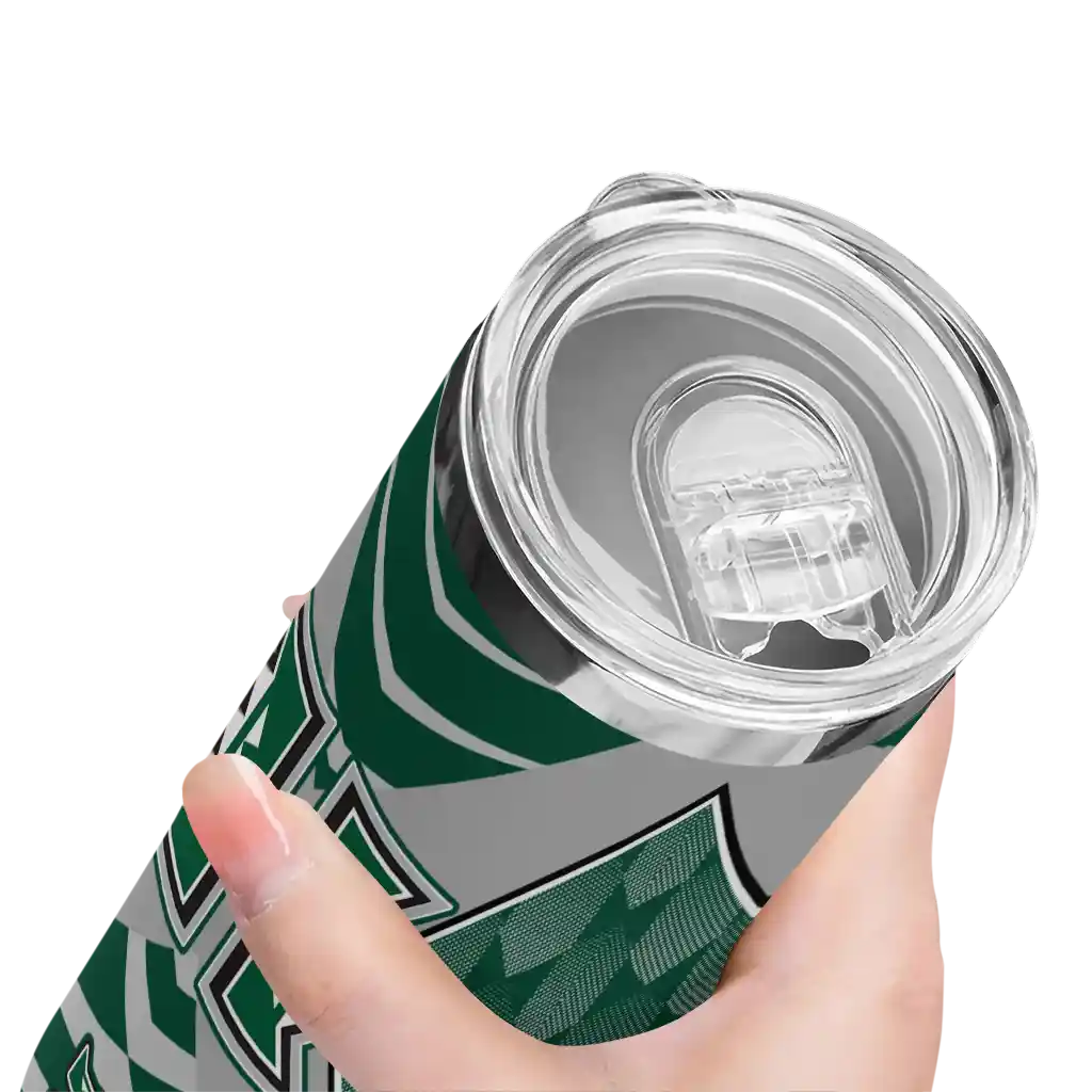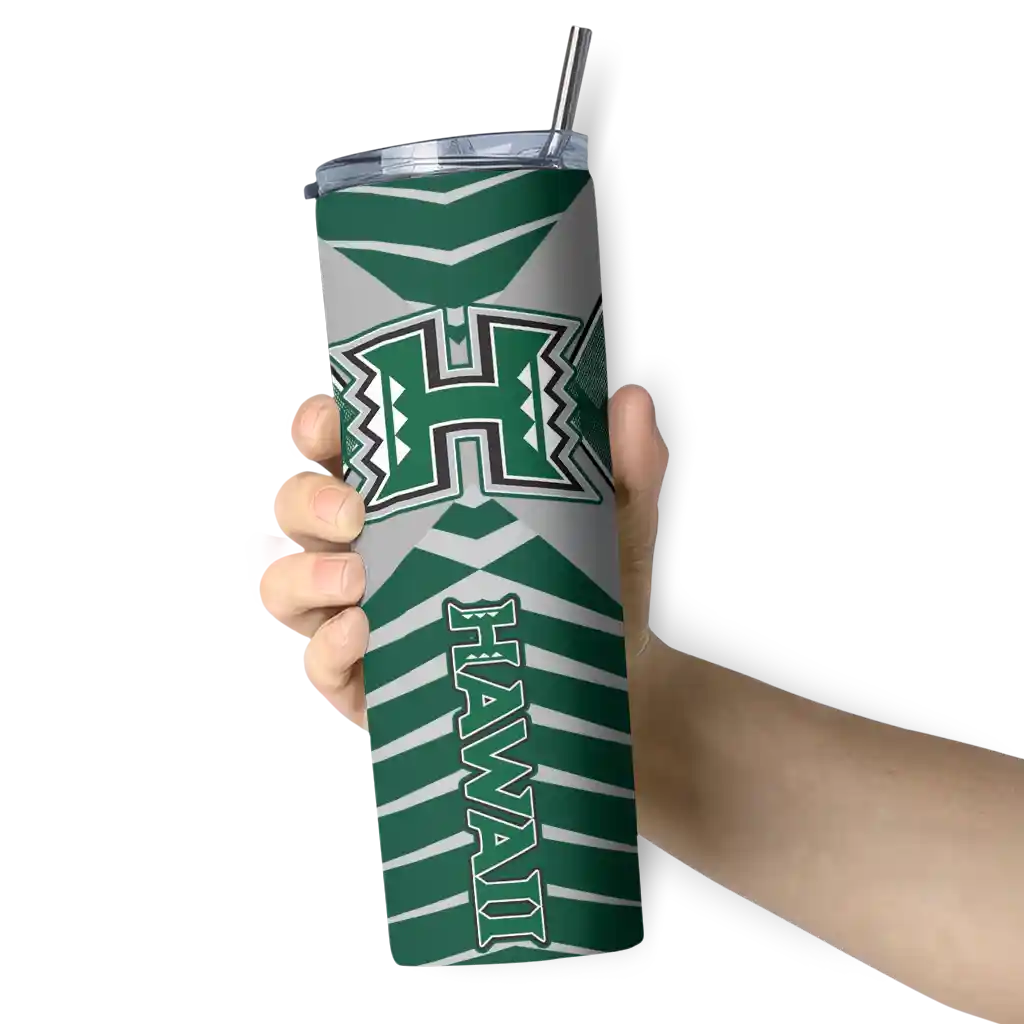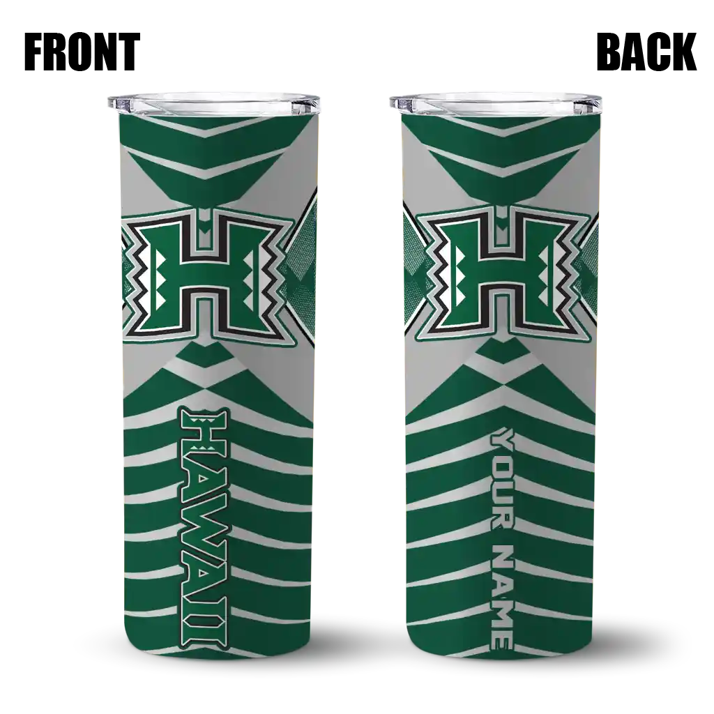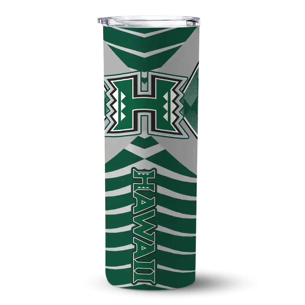 The Customized Hawaii Rainbow Warriors Helmet Clash Green Skinny Tumbler tumbler is the perfect way to stay refreshed while showing off your pride for Hawaii Rainbow Warriors. With its double-wall insulation, your drinks stay at the right temperature for hours, whether you're enjoying a hot coffee or keeping your iced drink cold. What's inside? You’ll find 1 stainless steel tumbler, 1 clear lid, and 1 removable straw. It's the perfect blend of function and fan spirit! Ergonomically designed for comfort, made from durable stainless steel, and insulated to maintain your drink’s temperature, this tumbler is a must-have for any dedicated NCAA fan.
