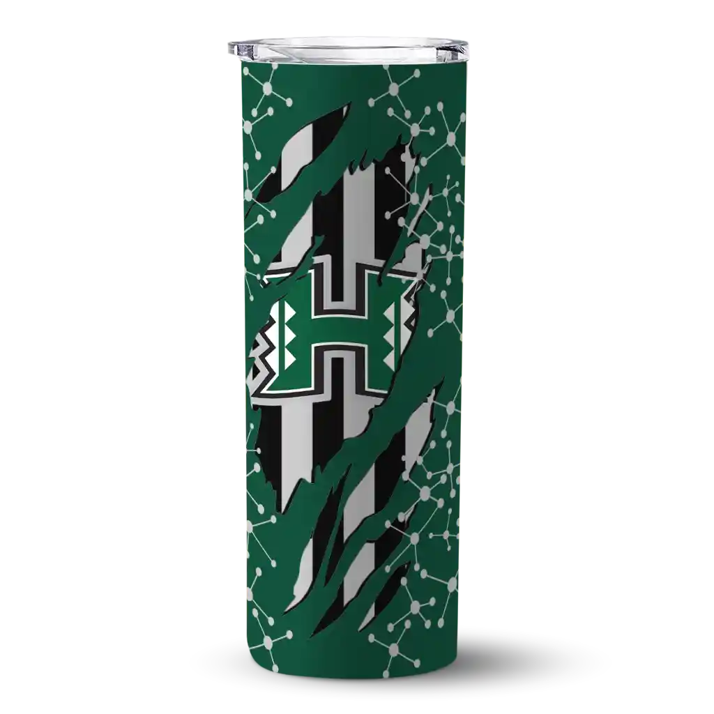 The Customized Hawaii Rainbow Warriors Helmet Clash Green Skinny Tumbler tumbler is the perfect way to stay refreshed while showing off your pride for Hawaii Rainbow Warriors. With its double-wall insulation, your drinks stay at the right temperature for hours, whether you're enjoying a hot coffee or keeping your iced drink cold. What's inside? You’ll find 1 stainless steel tumbler, 1 clear lid, and 1 removable straw. It's the perfect blend of function and fan spirit! Ergonomically designed for comfort, made from durable stainless steel, and insulated to maintain your drink’s temperature, this tumbler is a must-have for any dedicated NCAA fan.
