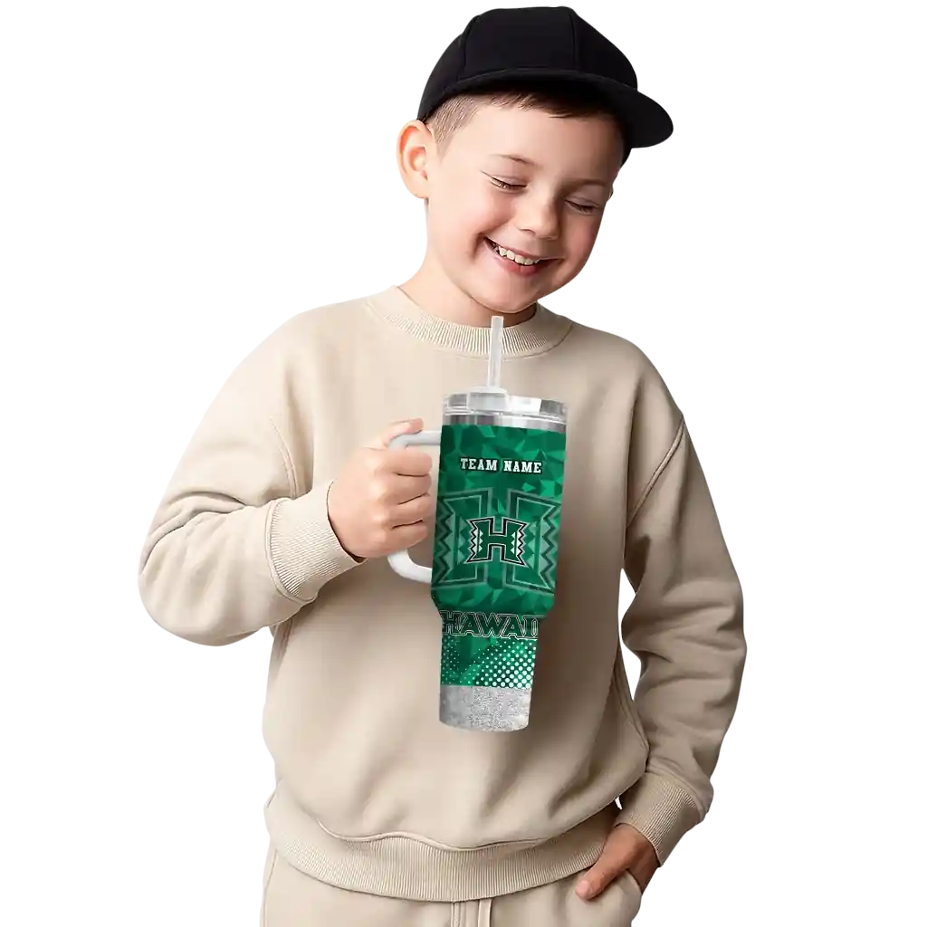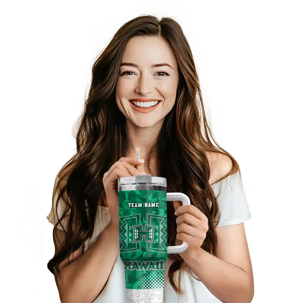 Hawaii Rainbow Warriors Tumber – Personalized Geometric Prism Curved Green