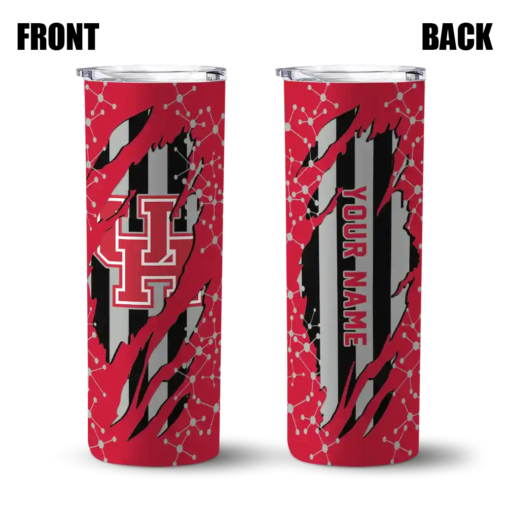 No question about it—the Personalized Houston Cougars Claw Cut Red Black Curved Tumbler is the ultimate way to stay refreshed while rocking your Houston Cougars pride. From the stadium to your tailgate, or just chilling at home, this sleek tumbler makes sure you stay hydrated in style. What’s in the box? A stainless steel tumbler, clear lid, and removable straw—all the essentials for keeping your favorite drinks on point!
