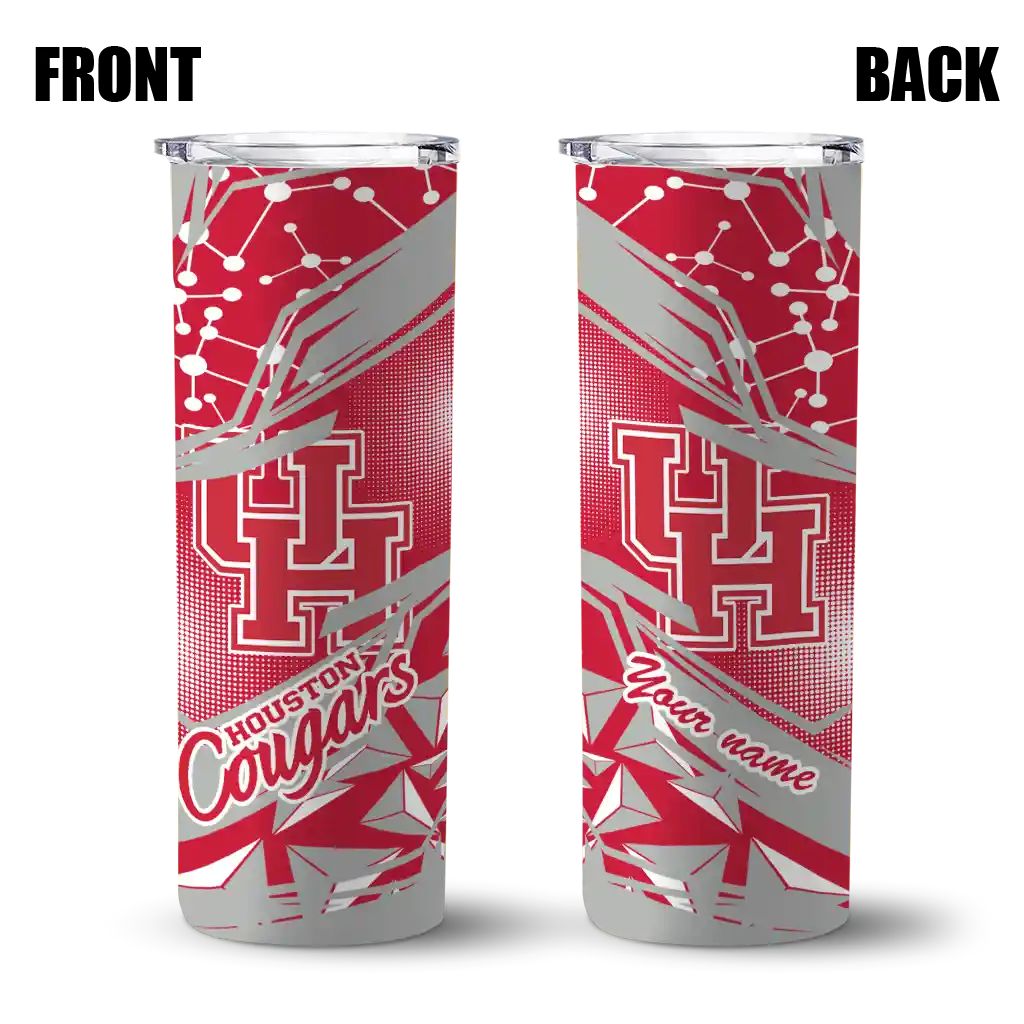 The Personalized Houston Cougars Helmet Clash Red Skinny Tumbler tumbler is the perfect way to stay refreshed while showing off your pride for Houston Cougars. With its double-wall insulation, your drinks stay at the right temperature for hours, whether you're enjoying a hot coffee or keeping your iced drink cold. What's inside? You’ll find 1 stainless steel tumbler, 1 clear lid, and 1 removable straw. It's the perfect blend of function and fan spirit! Ergonomically designed for comfort, made from durable stainless steel, and insulated to maintain your drink’s temperature, this tumbler is a must-have for any dedicated NCAA fan.