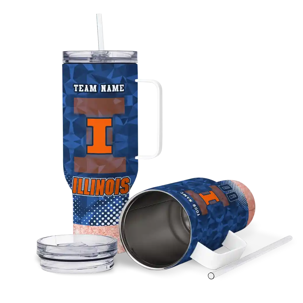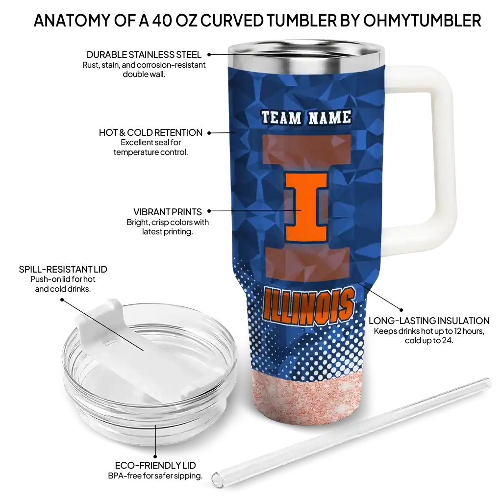 No question about it—the Customized Illinois Fighting Illini Geometric Prism Blue Curved Tumbler is the ultimate way to stay refreshed while rocking your Illinois Fighting Illini pride. From the stadium to your tailgate, or just chilling at home, this sleek tumbler makes sure you stay hydrated in style. What’s in the box? A stainless steel tumbler, clear lid, and removable straw—all the essentials for keeping your favorite drinks on point!