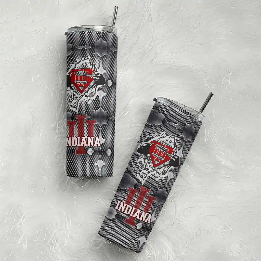 The Custom Indiana Hoosiers Chevron V Red Gray Skinny Tumbler tumbler is the perfect way to stay refreshed while showing off your pride for Indiana Hoosiers. With its double-wall insulation, your drinks stay at the right temperature for hours, whether you're enjoying a hot coffee or keeping your iced drink cold. What's inside? You’ll find 1 stainless steel tumbler, 1 clear lid, and 1 removable straw. It's the perfect blend of function and fan spirit! Ergonomically designed for comfort, made from durable stainless steel, and insulated to maintain your drink’s temperature, this tumbler is a must-have for any dedicated NCAA fan.