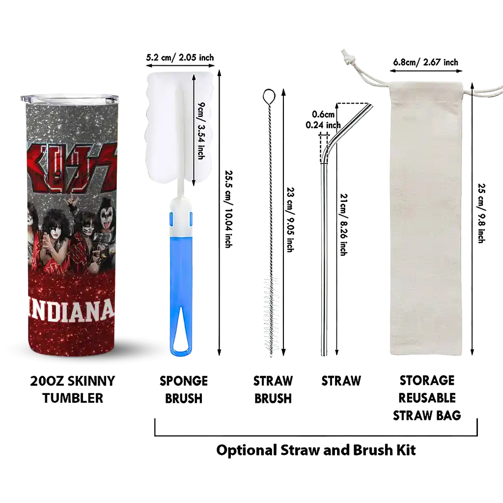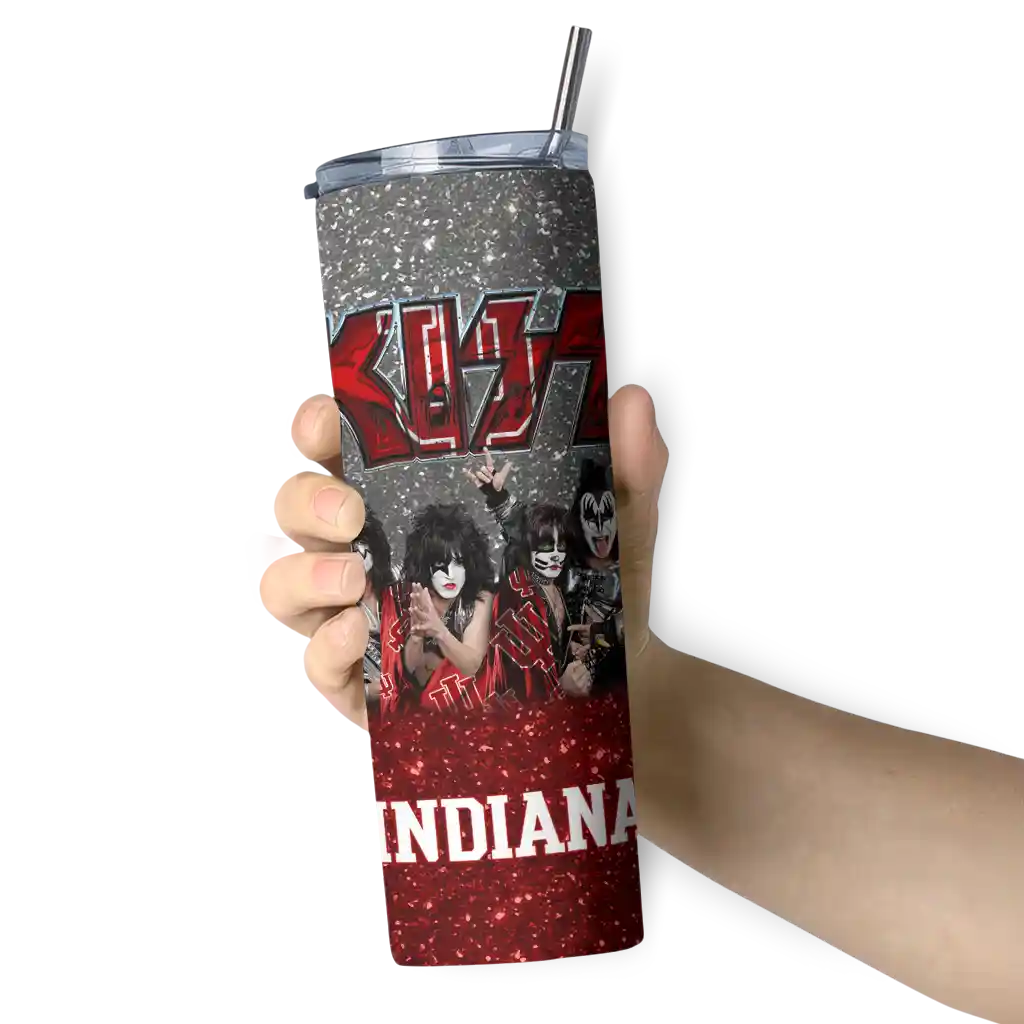 The Customized Indiana Hoosiers Kiss Band Cream Skinny Tumbler tumbler is the perfect way to stay refreshed while showing off your pride for Indiana Hoosiers. With its double-wall insulation, your drinks stay at the right temperature for hours, whether you're enjoying a hot coffee or keeping your iced drink cold. What's inside? You’ll find 1 stainless steel tumbler, 1 clear lid, and 1 removable straw. It's the perfect blend of function and fan spirit! Ergonomically designed for comfort, made from durable stainless steel, and insulated to maintain your drink’s temperature, this tumbler is a must-have for any dedicated NCAA fan.