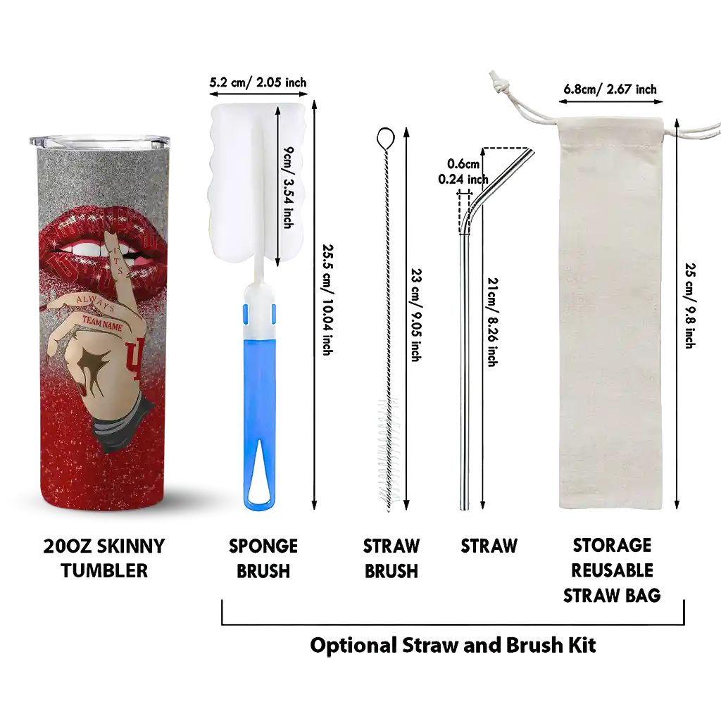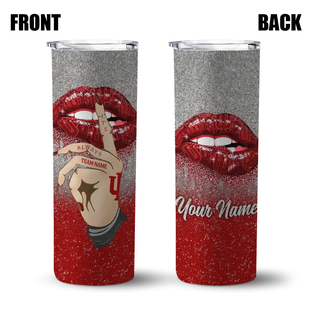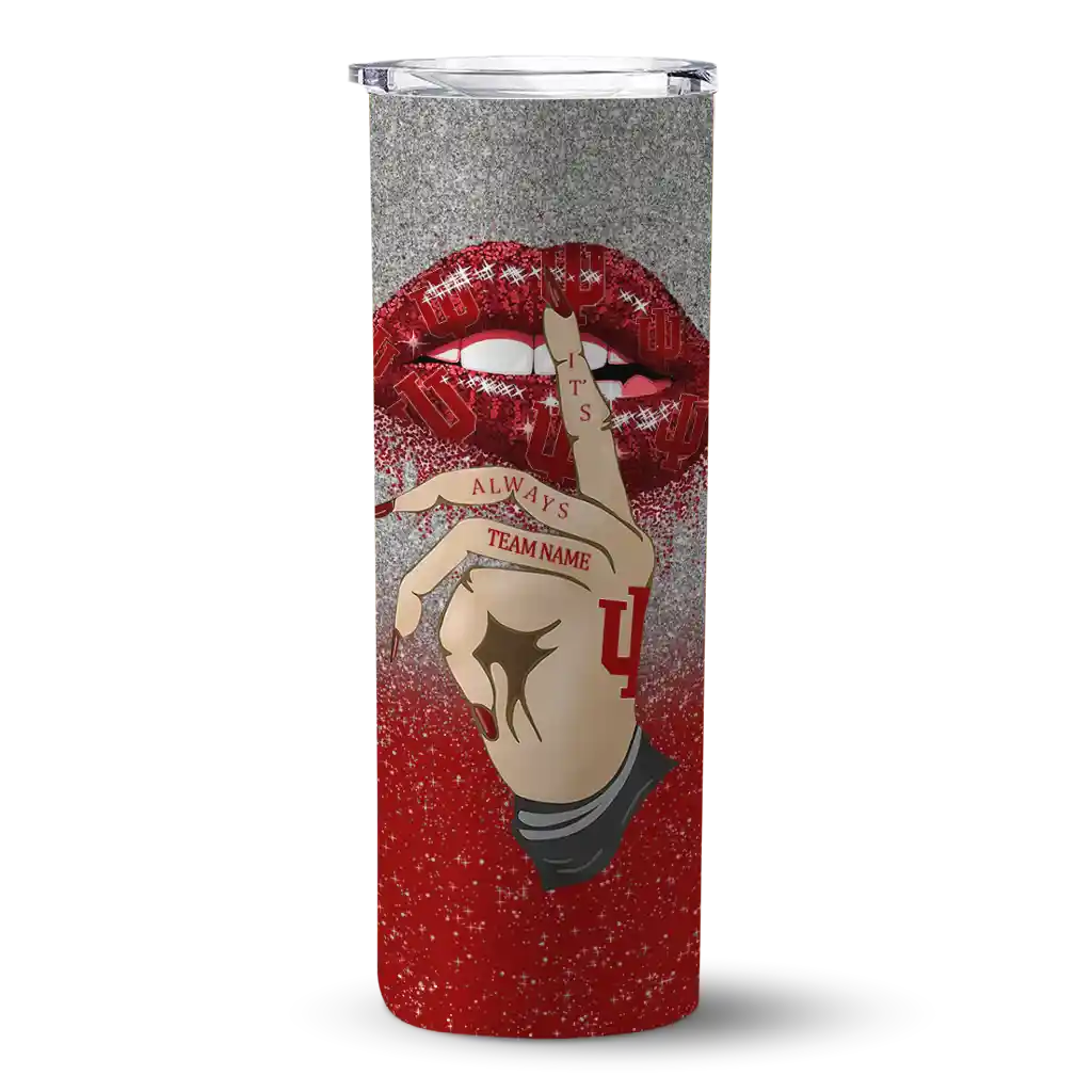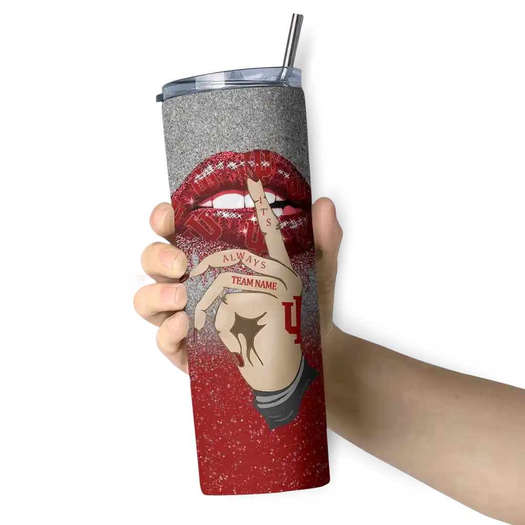 Customized Indiana Hoosiers Sparkle Lips Red Skinny Tumbler