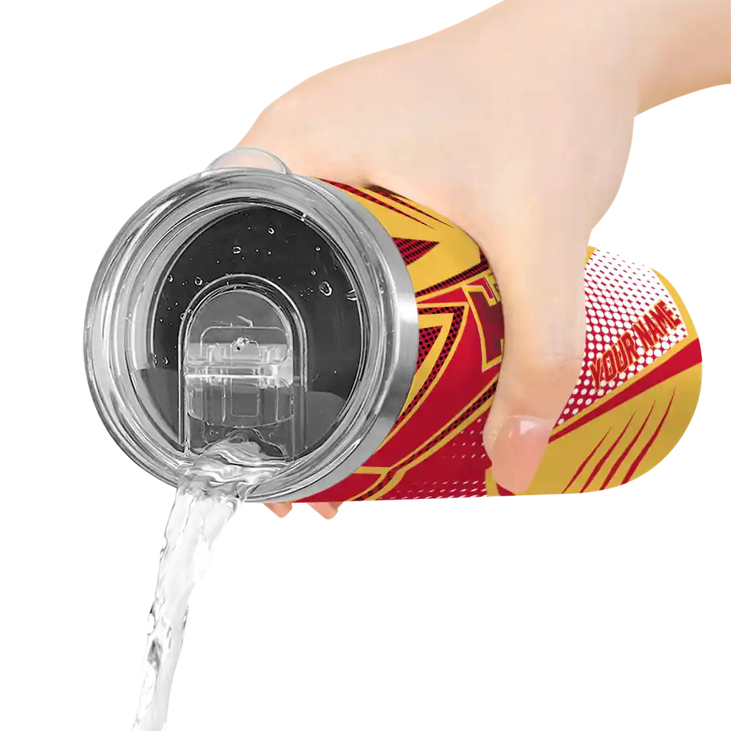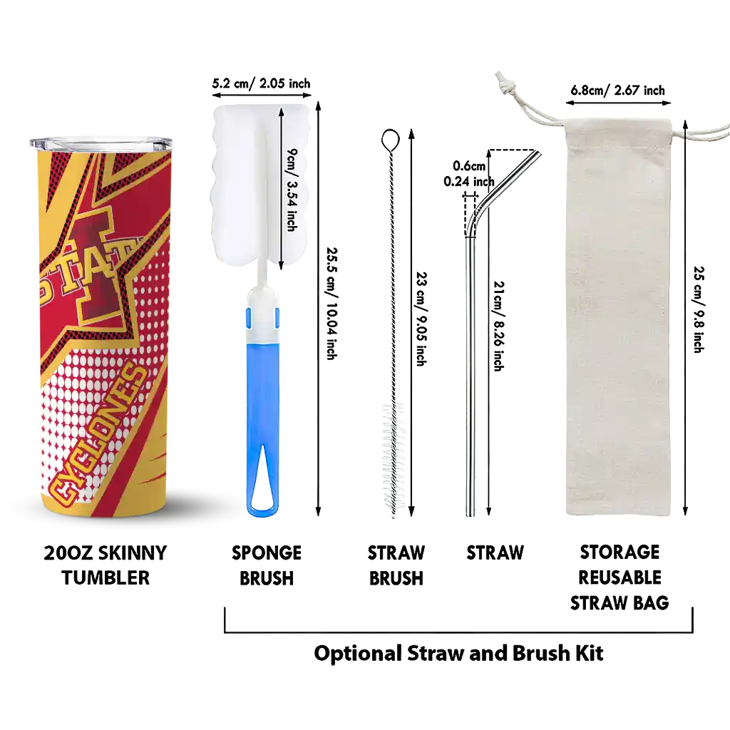 The Custom Iowa State Cyclones Web Stripes Red White Skinny Tumbler tumbler is the perfect way to stay refreshed while showing off your pride for Iowa State Cyclones. With its double-wall insulation, your drinks stay at the right temperature for hours, whether you're enjoying a hot coffee or keeping your iced drink cold. What's inside? You’ll find 1 stainless steel tumbler, 1 clear lid, and 1 removable straw. It's the perfect blend of function and fan spirit! Ergonomically designed for comfort, made from durable stainless steel, and insulated to maintain your drink’s temperature, this tumbler is a must-have for any dedicated NCAA fan.