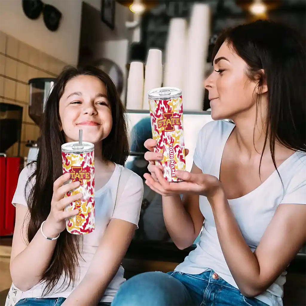 The Personalized Iowa State Cyclones Claw Marks Red White Skinny Tumbler tumbler is the perfect way to stay refreshed while showing off your pride for Iowa State Cyclones. With its double-wall insulation, your drinks stay at the right temperature for hours, whether you're enjoying a hot coffee or keeping your iced drink cold. What's inside? You’ll find 1 stainless steel tumbler, 1 clear lid, and 1 removable straw. It's the perfect blend of function and fan spirit! Ergonomically designed for comfort, made from durable stainless steel, and insulated to maintain your drink’s temperature, this tumbler is a must-have for any dedicated NCAA fan.