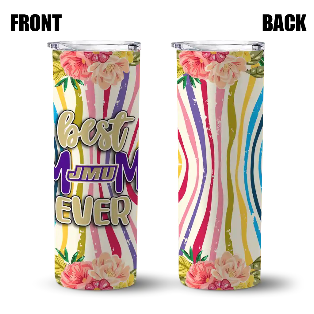 Introducing the James Madison Dukes Tumblers from NCAA Fan Pro —where fan pride meets practical design. This slim tumbler is created for NCAA fans who want their drinks at the perfect temperature while displaying their school pride. The double-wall insulation ensures your hot beverages stay warm and your cold drinks stay chilled for hours, so you can enjoy your drinks at their best, whether you're at a game, tailgate, or on the go.