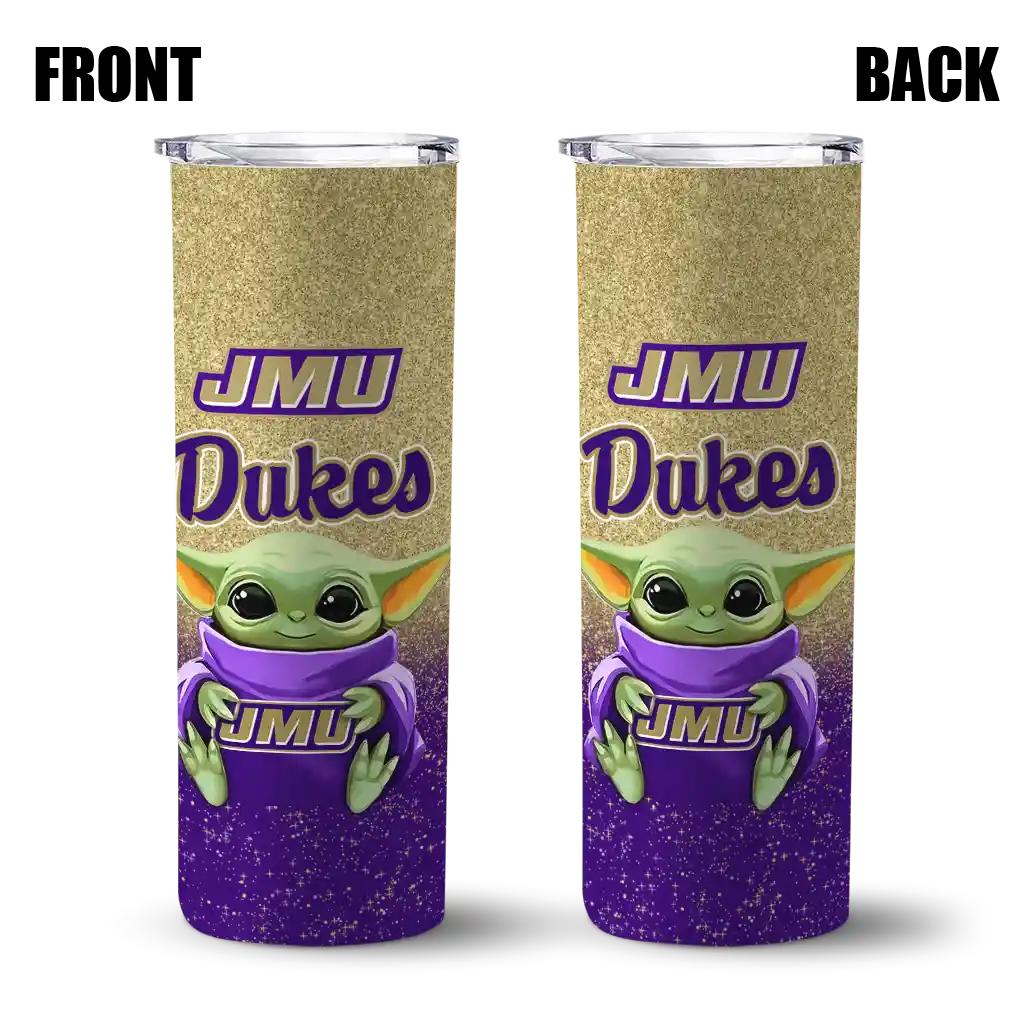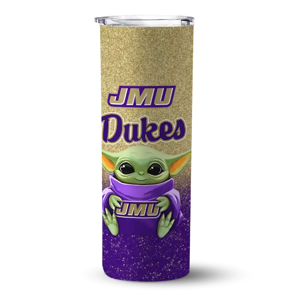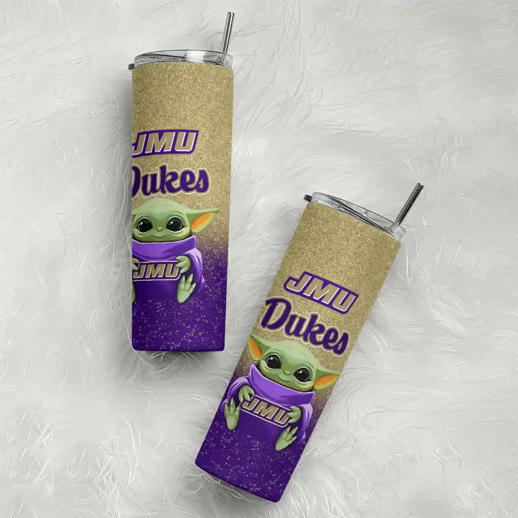The James Madison Dukes Yoda Smile Purple Skinny Tumbler tumbler is the perfect way to stay refreshed while showing off your pride for James Madison Dukes. With its double-wall insulation, your drinks stay at the right temperature for hours, whether you're enjoying a hot coffee or keeping your iced drink cold. What's inside? You’ll find 1 stainless steel tumbler, 1 clear lid, and 1 removable straw. It's the perfect blend of function and fan spirit! Ergonomically designed for comfort, made from durable stainless steel, and insulated to maintain your drink’s temperature, this tumbler is a must-have for any dedicated NCAA fan.