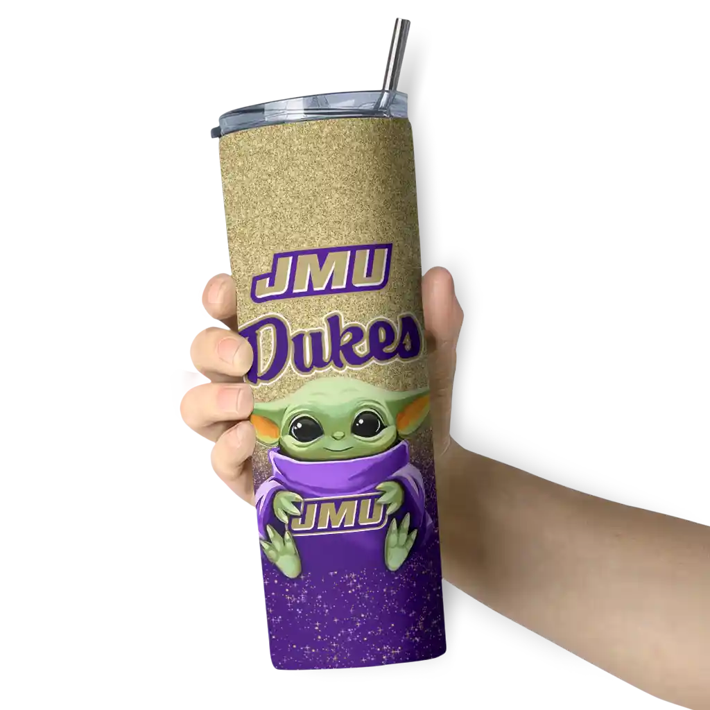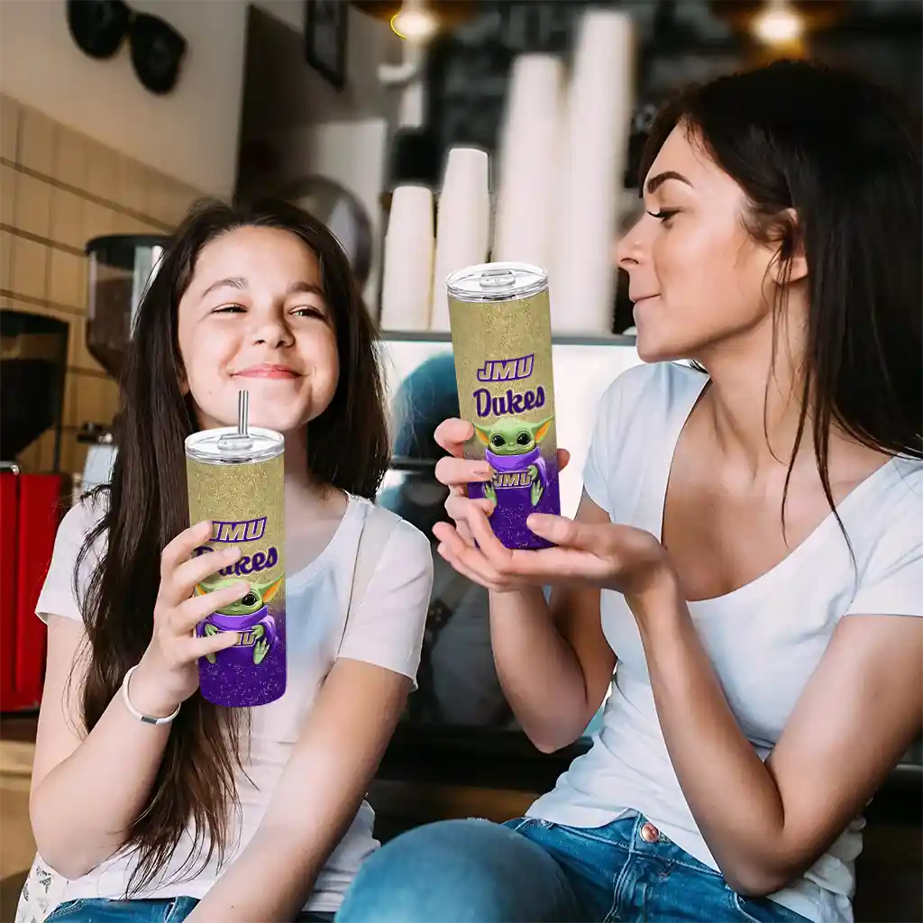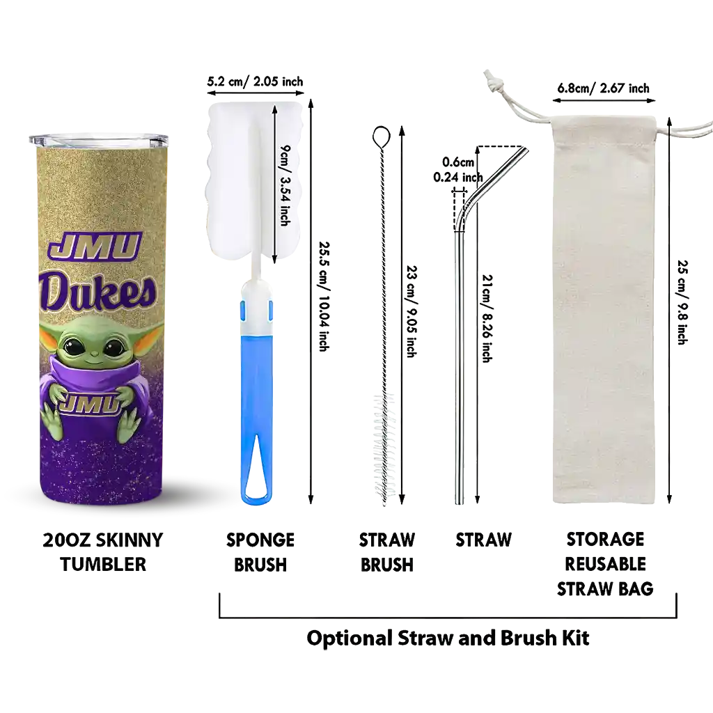 The James Madison Dukes Yoda Smile Purple Skinny Tumbler tumbler is the perfect way to stay refreshed while showing off your pride for James Madison Dukes. With its double-wall insulation, your drinks stay at the right temperature for hours, whether you're enjoying a hot coffee or keeping your iced drink cold. What's inside? You’ll find 1 stainless steel tumbler, 1 clear lid, and 1 removable straw. It's the perfect blend of function and fan spirit! Ergonomically designed for comfort, made from durable stainless steel, and insulated to maintain your drink’s temperature, this tumbler is a must-have for any dedicated NCAA fan.