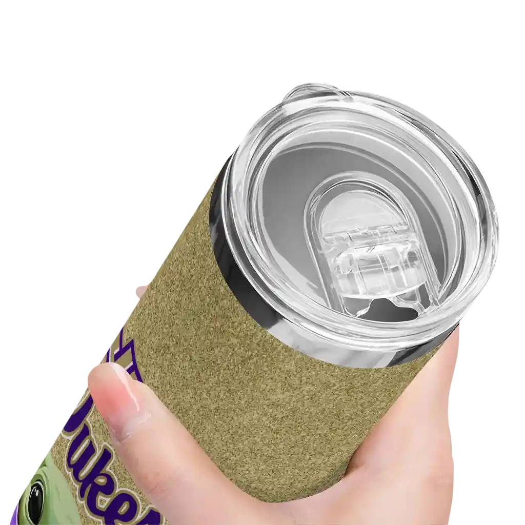 James Madison Dukes Yoda Smile Purple Skinny Tumbler