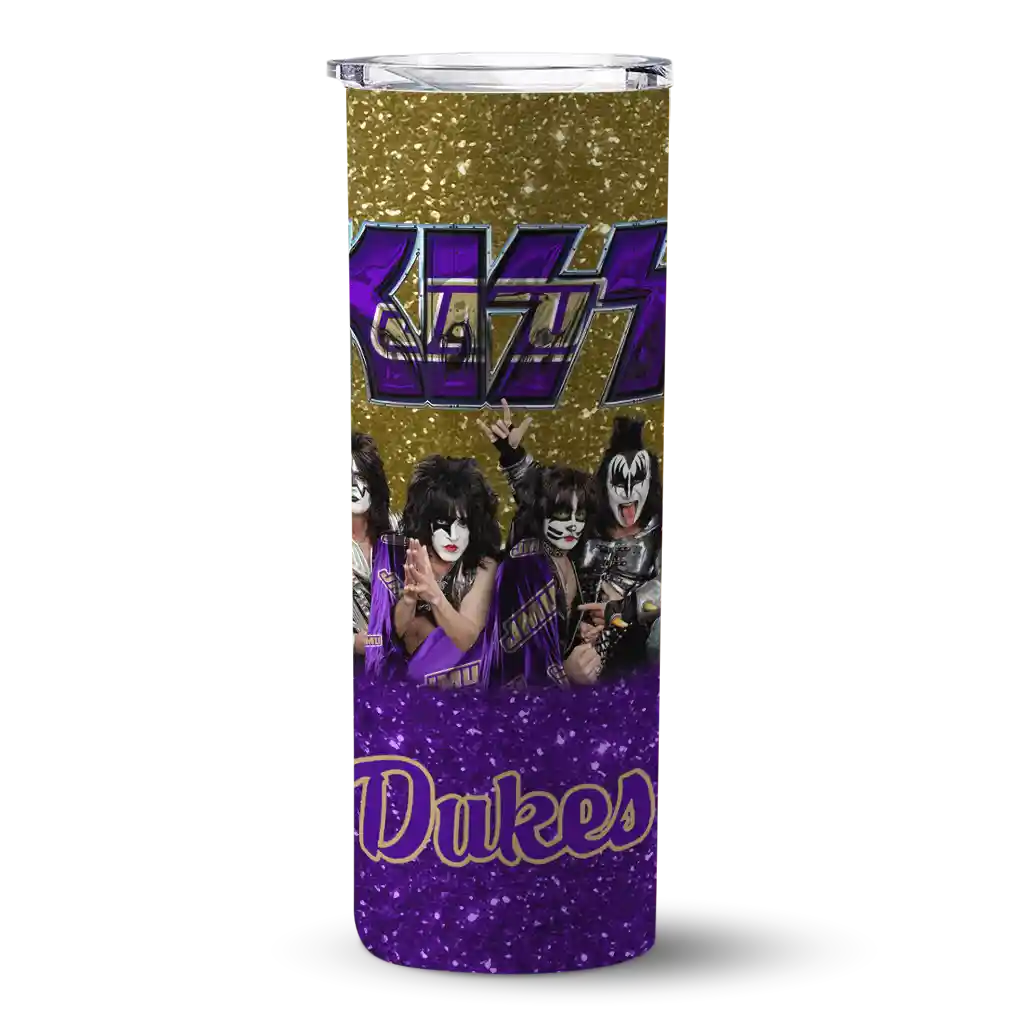 The Personalized James Madison Dukes Kiss Band Gold Skinny Tumbler tumbler is the perfect way to stay refreshed while showing off your pride for James Madison Dukes. With its double-wall insulation, your drinks stay at the right temperature for hours, whether you're enjoying a hot coffee or keeping your iced drink cold. What's inside? You’ll find 1 stainless steel tumbler, 1 clear lid, and 1 removable straw. It's the perfect blend of function and fan spirit! Ergonomically designed for comfort, made from durable stainless steel, and insulated to maintain your drink’s temperature, this tumbler is a must-have for any dedicated NCAA fan.