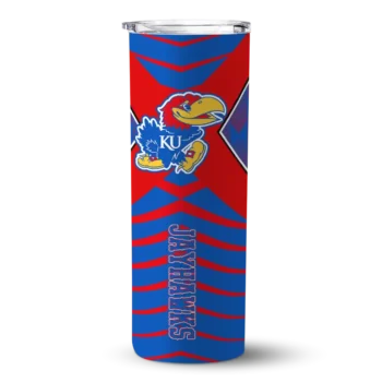 The Custom Kansas Jayhawks Patterned Waves Blue Skinny Tumbler tumbler is the perfect way to stay refreshed while showing off your pride for Kansas Jayhawks. With its double-wall insulation, your drinks stay at the right temperature for hours, whether you're enjoying a hot coffee or keeping your iced drink cold. What's inside? You’ll find 1 stainless steel tumbler, 1 clear lid, and 1 removable straw. It's the perfect blend of function and fan spirit! Ergonomically designed for comfort, made from durable stainless steel, and insulated to maintain your drink’s temperature, this tumbler is a must-have for any dedicated NCAA fan.