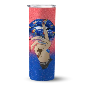 Custom Kansas Jayhawks Sparkle Lips Blue Skinny Tumbler $28.99