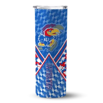 The Personalized Kansas Jayhawks Chevron Patch Blue Skinny Tumbler tumbler is the perfect way to stay refreshed while showing off your pride for Kansas Jayhawks. With its double-wall insulation, your drinks stay at the right temperature for hours, whether you're enjoying a hot coffee or keeping your iced drink cold. What's inside? You’ll find 1 stainless steel tumbler, 1 clear lid, and 1 removable straw. It's the perfect blend of function and fan spirit! Ergonomically designed for comfort, made from durable stainless steel, and insulated to maintain your drink’s temperature, this tumbler is a must-have for any dedicated NCAA fan.