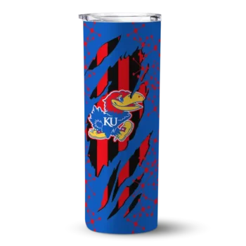 The Customized Kansas Jayhawks Helmet Belt Blue Black Skinny Tumbler tumbler is the perfect way to stay refreshed while showing off your pride for Kansas Jayhawks. With its double-wall insulation, your drinks stay at the right temperature for hours, whether you're enjoying a hot coffee or keeping your iced drink cold. What's inside? You’ll find 1 stainless steel tumbler, 1 clear lid, and 1 removable straw. It's the perfect blend of function and fan spirit! Ergonomically designed for comfort, made from durable stainless steel, and insulated to maintain your drink’s temperature, this tumbler is a must-have for any dedicated NCAA fan.