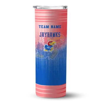 The Customized Kansas Jayhawks Swirl Texture Blue Skinny Tumbler tumbler is the perfect way to stay refreshed while showing off your pride for Kansas Jayhawks. With its double-wall insulation, your drinks stay at the right temperature for hours, whether you're enjoying a hot coffee or keeping your iced drink cold. What's inside? You’ll find 1 stainless steel tumbler, 1 clear lid, and 1 removable straw. It's the perfect blend of function and fan spirit! Ergonomically designed for comfort, made from durable stainless steel, and insulated to maintain your drink’s temperature, this tumbler is a must-have for any dedicated NCAA fan.