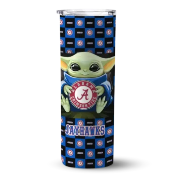 Personalized Kansas Jayhawks Yoda Cozy Blue Black Skinny Tumbler $28.99