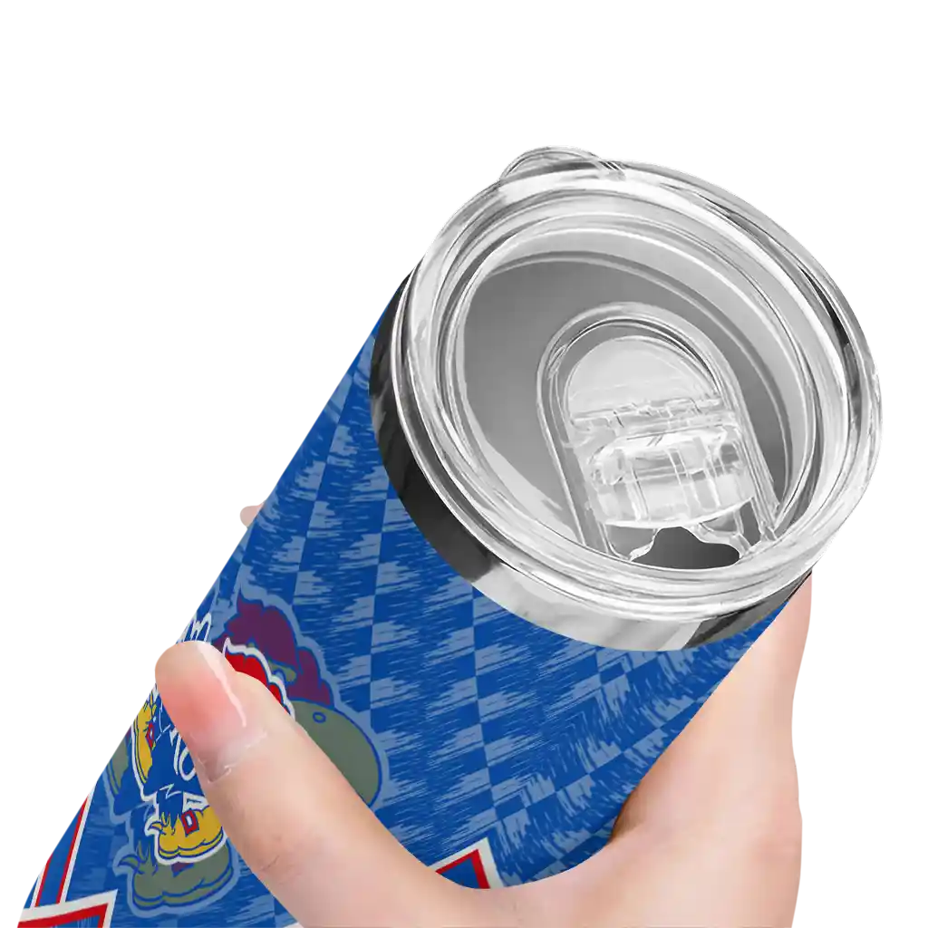 Introducing the Kansas Jayhawks Tumblers from NCAA Fan Pro —where fan pride meets practical design. This slim tumbler is created for NCAA fans who want their drinks at the perfect temperature while displaying their school pride. The double-wall insulation ensures your hot beverages stay warm and your cold drinks stay chilled for hours, so you can enjoy your drinks at their best, whether you're at a game, tailgate, or on the go.