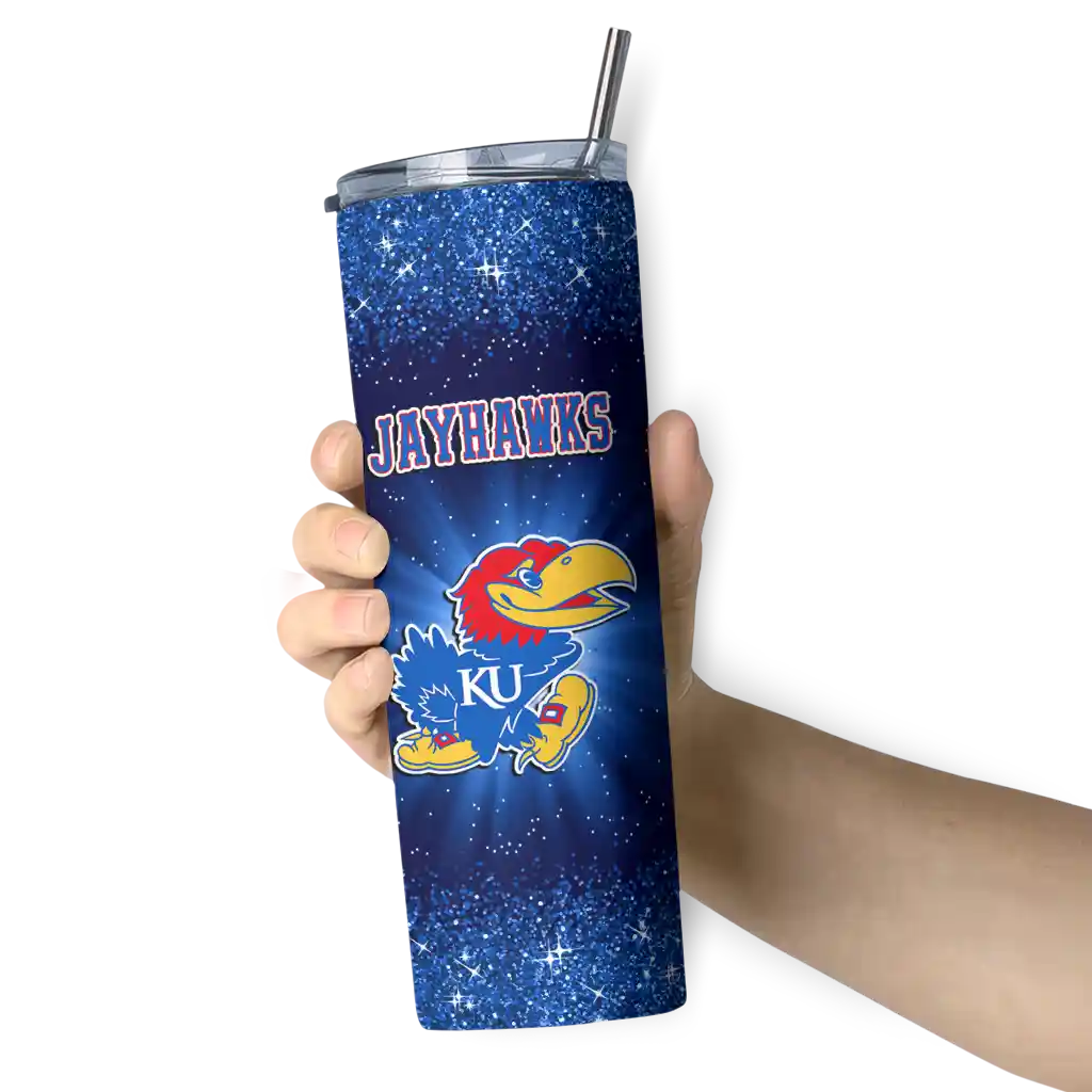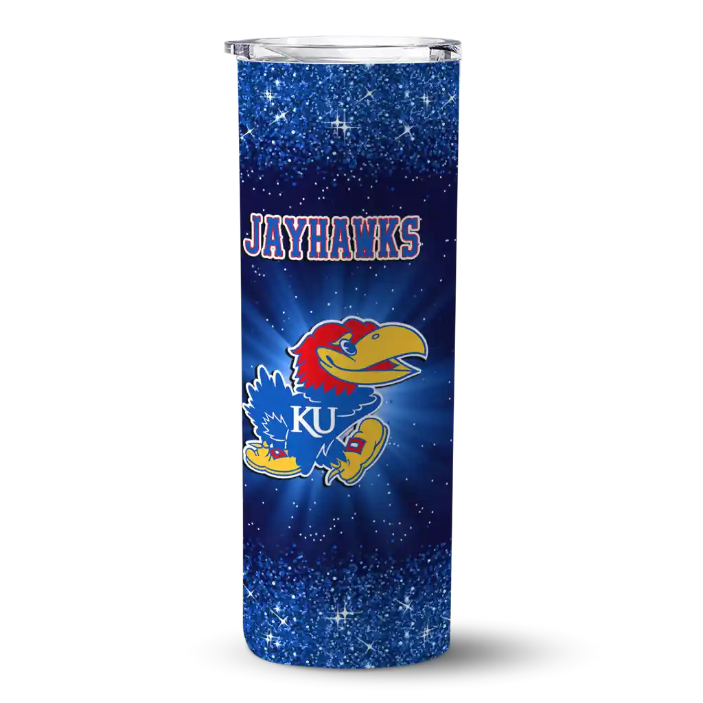 The Kansas Jayhawks Radiant Glitter Blue Skinny Tumbler tumbler is the perfect way to stay refreshed while showing off your pride for Kansas Jayhawks. With its double-wall insulation, your drinks stay at the right temperature for hours, whether you're enjoying a hot coffee or keeping your iced drink cold. What's inside? You’ll find 1 stainless steel tumbler, 1 clear lid, and 1 removable straw. It's the perfect blend of function and fan spirit! Ergonomically designed for comfort, made from durable stainless steel, and insulated to maintain your drink’s temperature, this tumbler is a must-have for any dedicated NCAA fan.