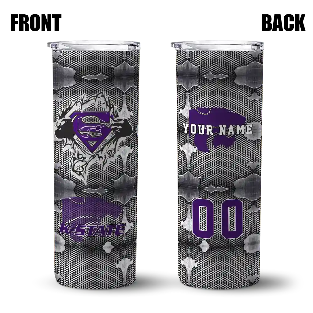 The Custom Kansas State Wildcats Chevron V Purple Gray Skinny Tumbler tumbler is the perfect way to stay refreshed while showing off your pride for Kansas State Wildcats. With its double-wall insulation, your drinks stay at the right temperature for hours, whether you're enjoying a hot coffee or keeping your iced drink cold. What's inside? You’ll find 1 stainless steel tumbler, 1 clear lid, and 1 removable straw. It's the perfect blend of function and fan spirit! Ergonomically designed for comfort, made from durable stainless steel, and insulated to maintain your drink’s temperature, this tumbler is a must-have for any dedicated NCAA fan.