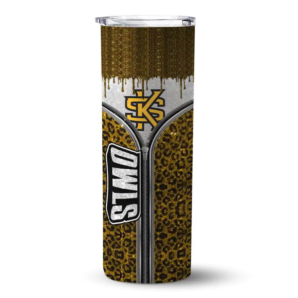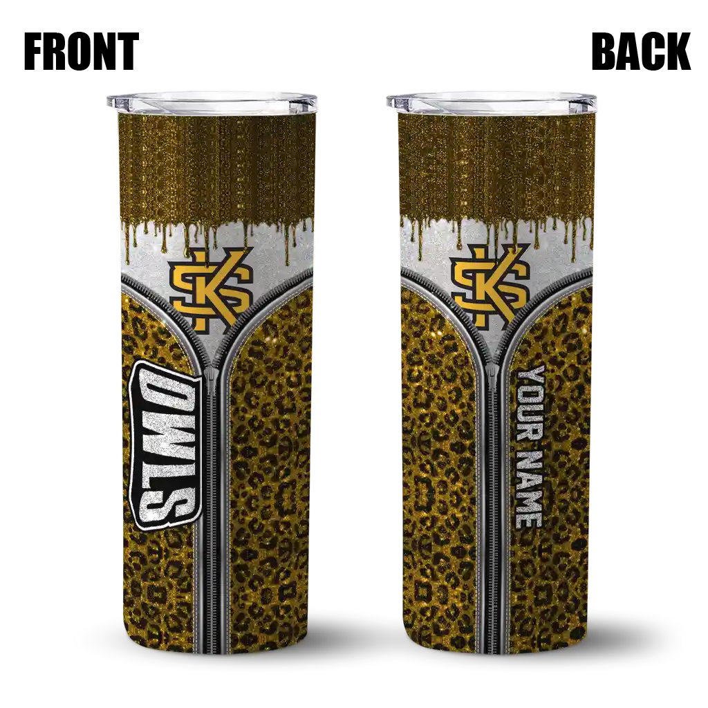 Kennesaw State Owls Tumber – Custom Sparkle Drip Skinny Gold