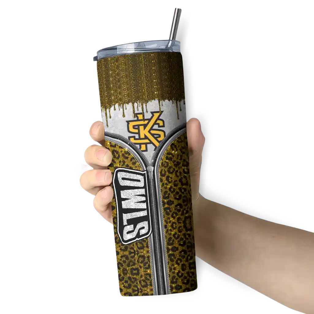No question about it—the Custom Kennesaw State Owls Leopard Zipper Gold Curved Tumbler is the ultimate way to stay refreshed while rocking your Kennesaw State Owls pride. From the stadium to your tailgate, or just chilling at home, this sleek tumbler makes sure you stay hydrated in style. What’s in the box? A stainless steel tumbler, clear lid, and removable straw—all the essentials for keeping your favorite drinks on point!