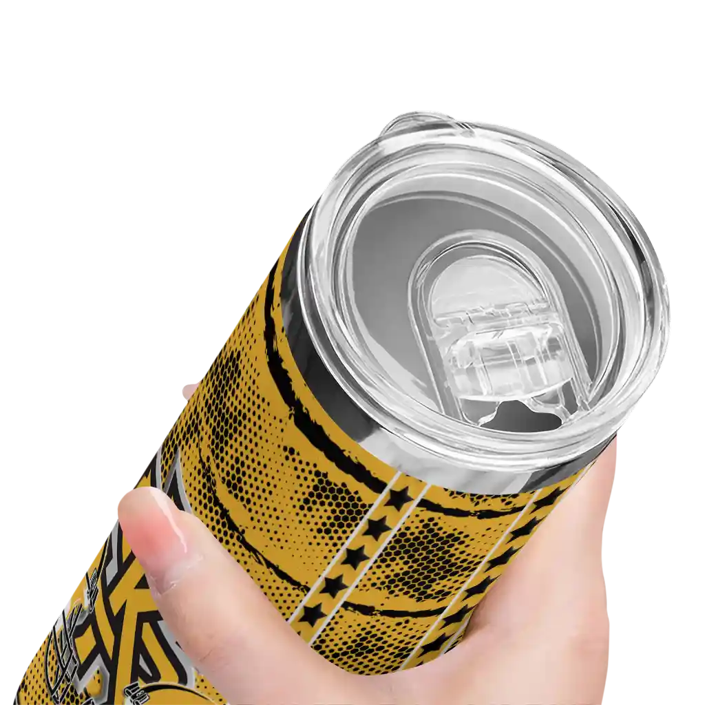 The Customized Kennesaw State Owls Torn Band Gold White Skinny Tumbler tumbler is the perfect way to stay refreshed while showing off your pride for Kennesaw State Owls. With its double-wall insulation, your drinks stay at the right temperature for hours, whether you're enjoying a hot coffee or keeping your iced drink cold. What's inside? You’ll find 1 stainless steel tumbler, 1 clear lid, and 1 removable straw. It's the perfect blend of function and fan spirit! Ergonomically designed for comfort, made from durable stainless steel, and insulated to maintain your drink’s temperature, this tumbler is a must-have for any dedicated NCAA fan.