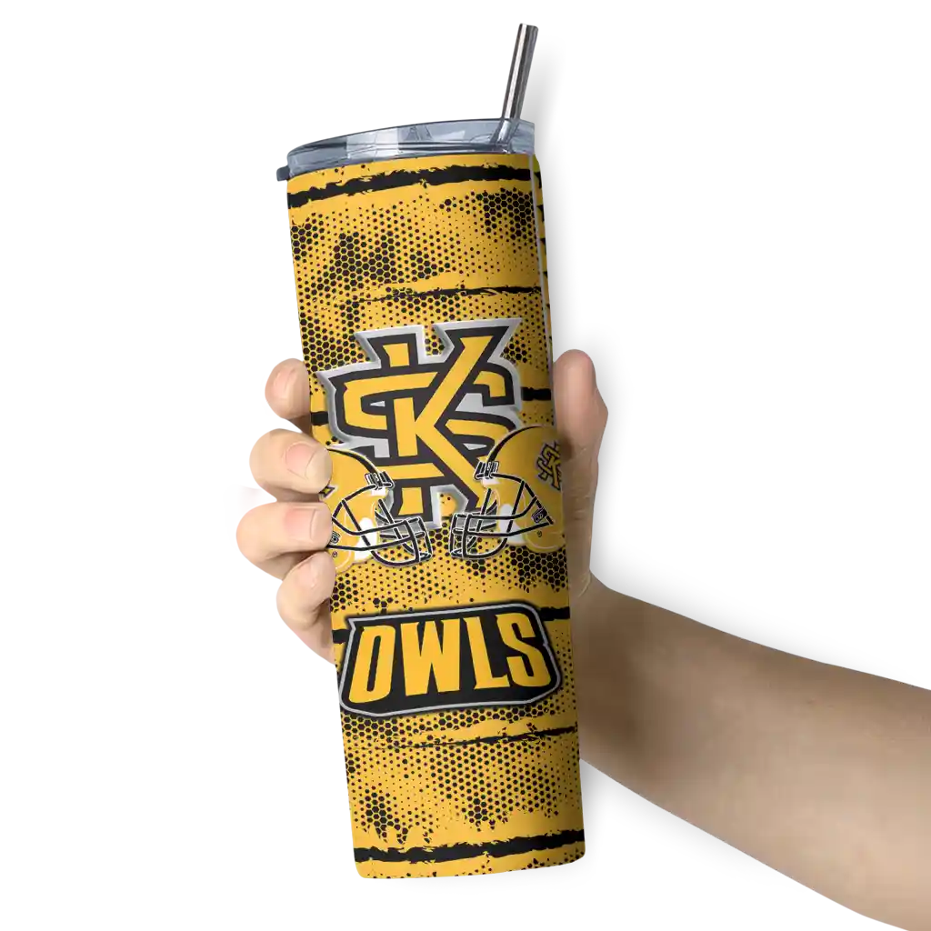 Introducing the Kennesaw State Owls Tumblers from NCAA Fan Pro —where fan pride meets practical design. This slim tumbler is created for NCAA fans who want their drinks at the perfect temperature while displaying their school pride. The double-wall insulation ensures your hot beverages stay warm and your cold drinks stay chilled for hours, so you can enjoy your drinks at their best, whether you're at a game, tailgate, or on the go.