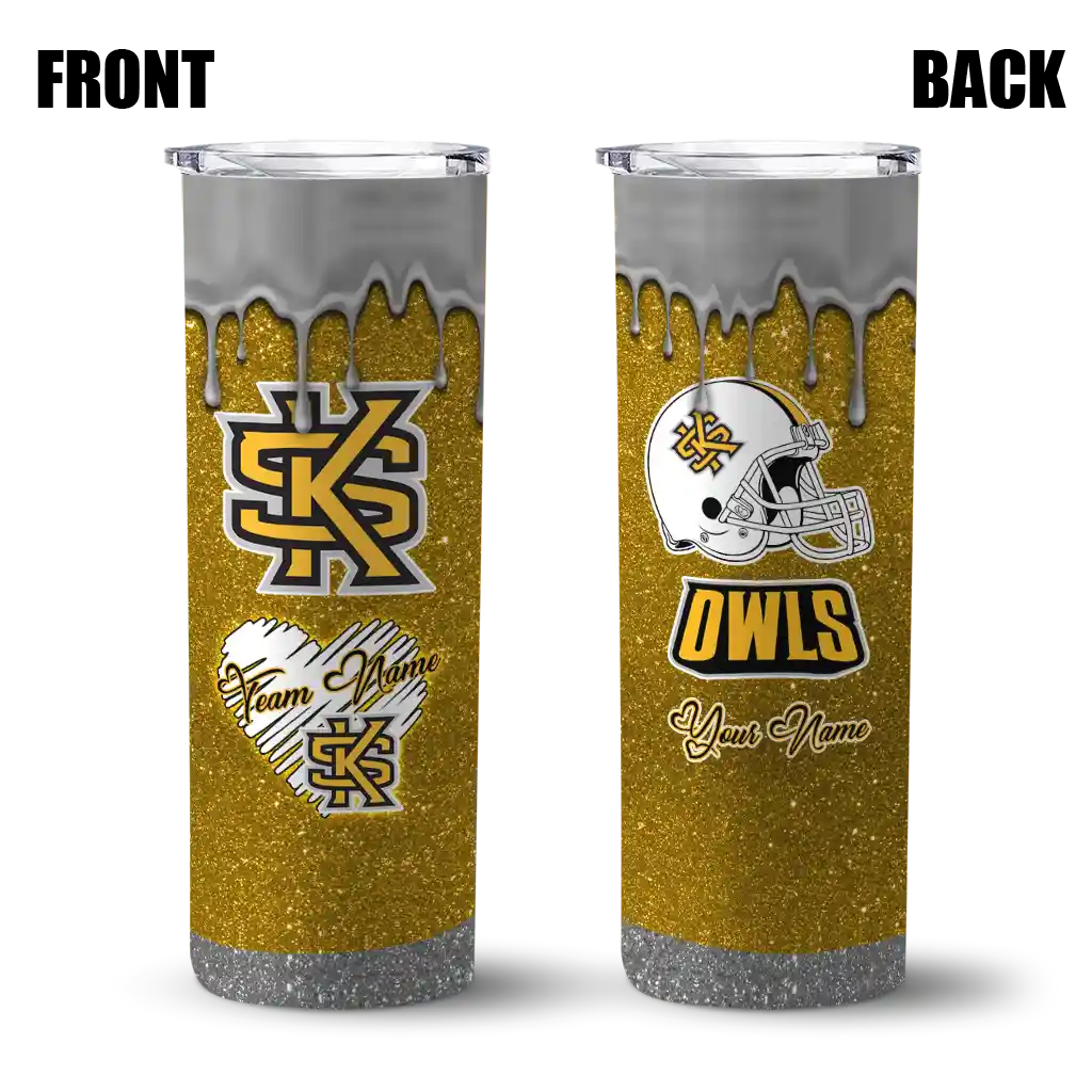 No question about it—the Personalized Kennesaw State Owls Hex Texture Gold Curved Tumbler is the ultimate way to stay refreshed while rocking your Kennesaw State Owls pride. From the stadium to your tailgate, or just chilling at home, this sleek tumbler makes sure you stay hydrated in style. What’s in the box? A stainless steel tumbler, clear lid, and removable straw—all the essentials for keeping your favorite drinks on point!