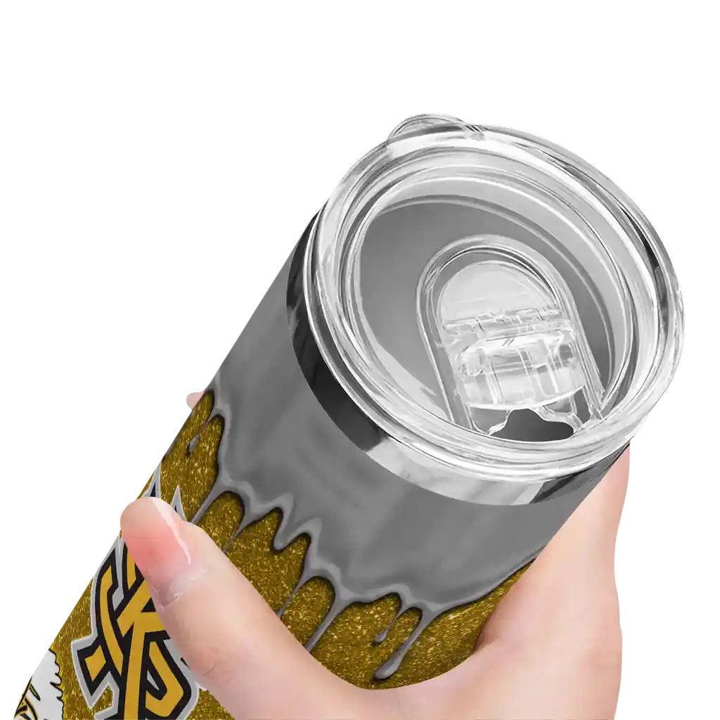 The Customized Kennesaw State Owls Torn Band Gold White Skinny Tumbler tumbler is the perfect way to stay refreshed while showing off your pride for Kennesaw State Owls. With its double-wall insulation, your drinks stay at the right temperature for hours, whether you're enjoying a hot coffee or keeping your iced drink cold. What's inside? You’ll find 1 stainless steel tumbler, 1 clear lid, and 1 removable straw. It's the perfect blend of function and fan spirit! Ergonomically designed for comfort, made from durable stainless steel, and insulated to maintain your drink’s temperature, this tumbler is a must-have for any dedicated NCAA fan.