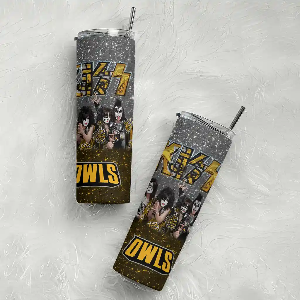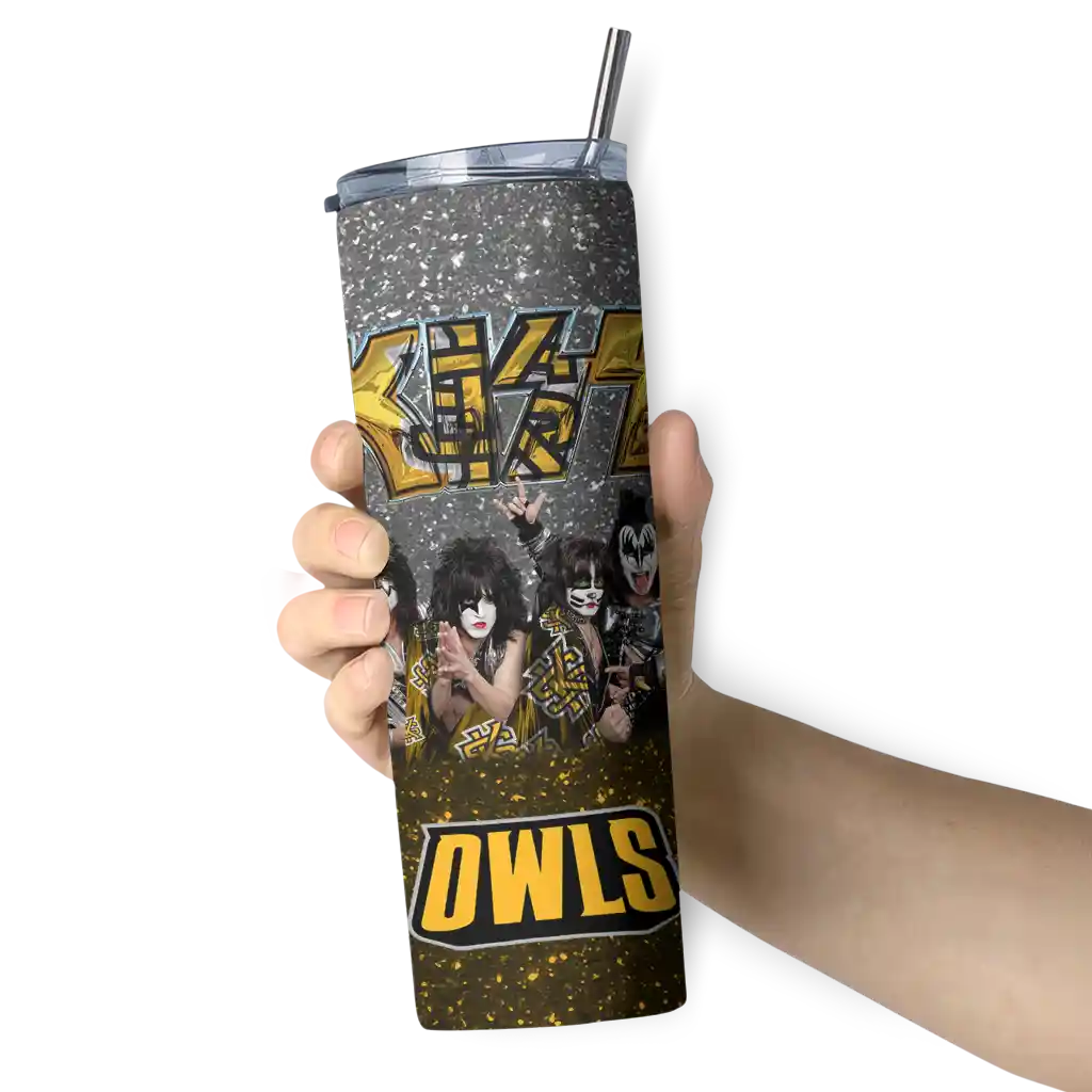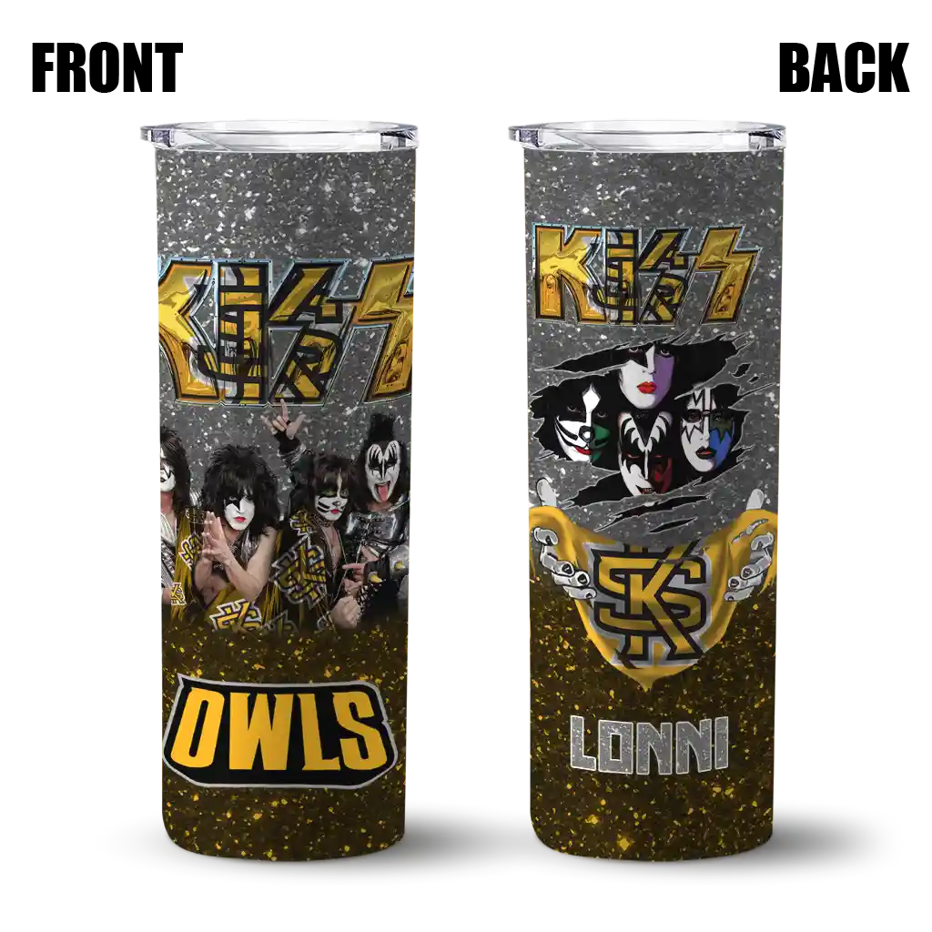 Personalized Kennesaw State Owls Kiss Band Black Skinny Tumbler