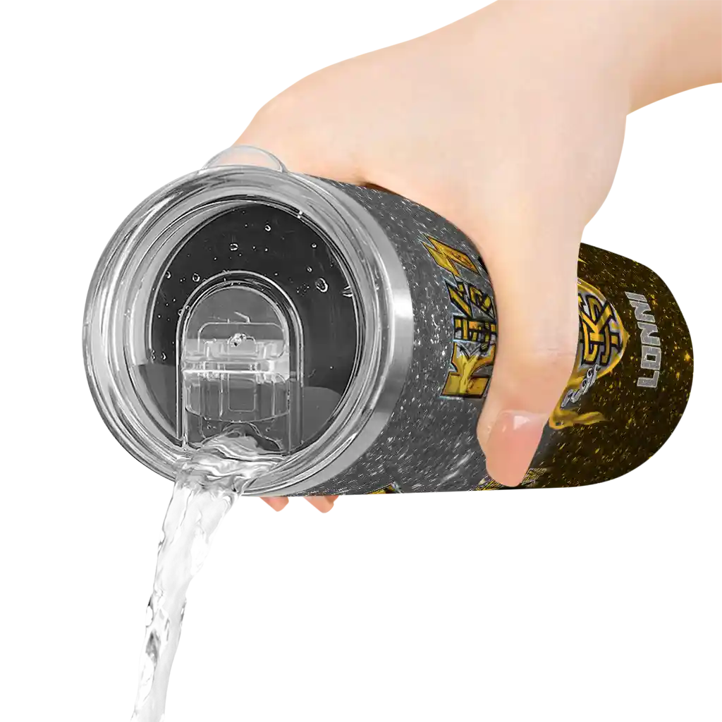 The Customized Kennesaw State Owls Torn Band Gold White Skinny Tumbler tumbler is the perfect way to stay refreshed while showing off your pride for Kennesaw State Owls. With its double-wall insulation, your drinks stay at the right temperature for hours, whether you're enjoying a hot coffee or keeping your iced drink cold. What's inside? You’ll find 1 stainless steel tumbler, 1 clear lid, and 1 removable straw. It's the perfect blend of function and fan spirit! Ergonomically designed for comfort, made from durable stainless steel, and insulated to maintain your drink’s temperature, this tumbler is a must-have for any dedicated NCAA fan.