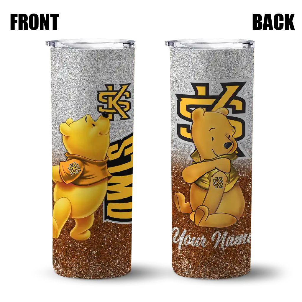 Personalized Kennesaw State Owls Winnie the Pooh Gold Gray Skinny Tumbler