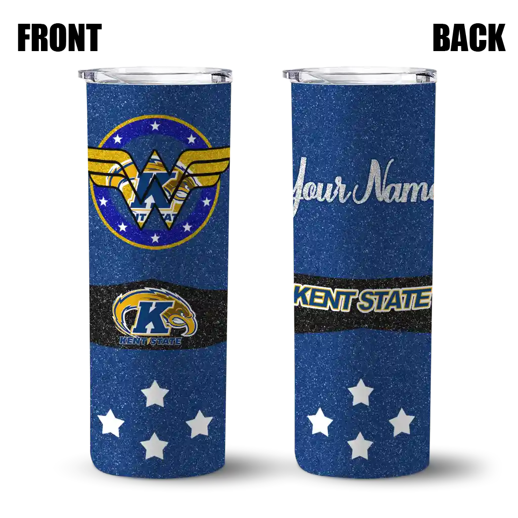 The Custom Kent State Golden Flashes Star Cluster Navy Blue Skinny Tumbler tumbler is the perfect way to stay refreshed while showing off your pride for Kent State Golden Flashes. With its double-wall insulation, your drinks stay at the right temperature for hours, whether you're enjoying a hot coffee or keeping your iced drink cold. What's inside? You’ll find 1 stainless steel tumbler, 1 clear lid, and 1 removable straw. It's the perfect blend of function and fan spirit! Ergonomically designed for comfort, made from durable stainless steel, and insulated to maintain your drink’s temperature, this tumbler is a must-have for any dedicated NCAA fan.