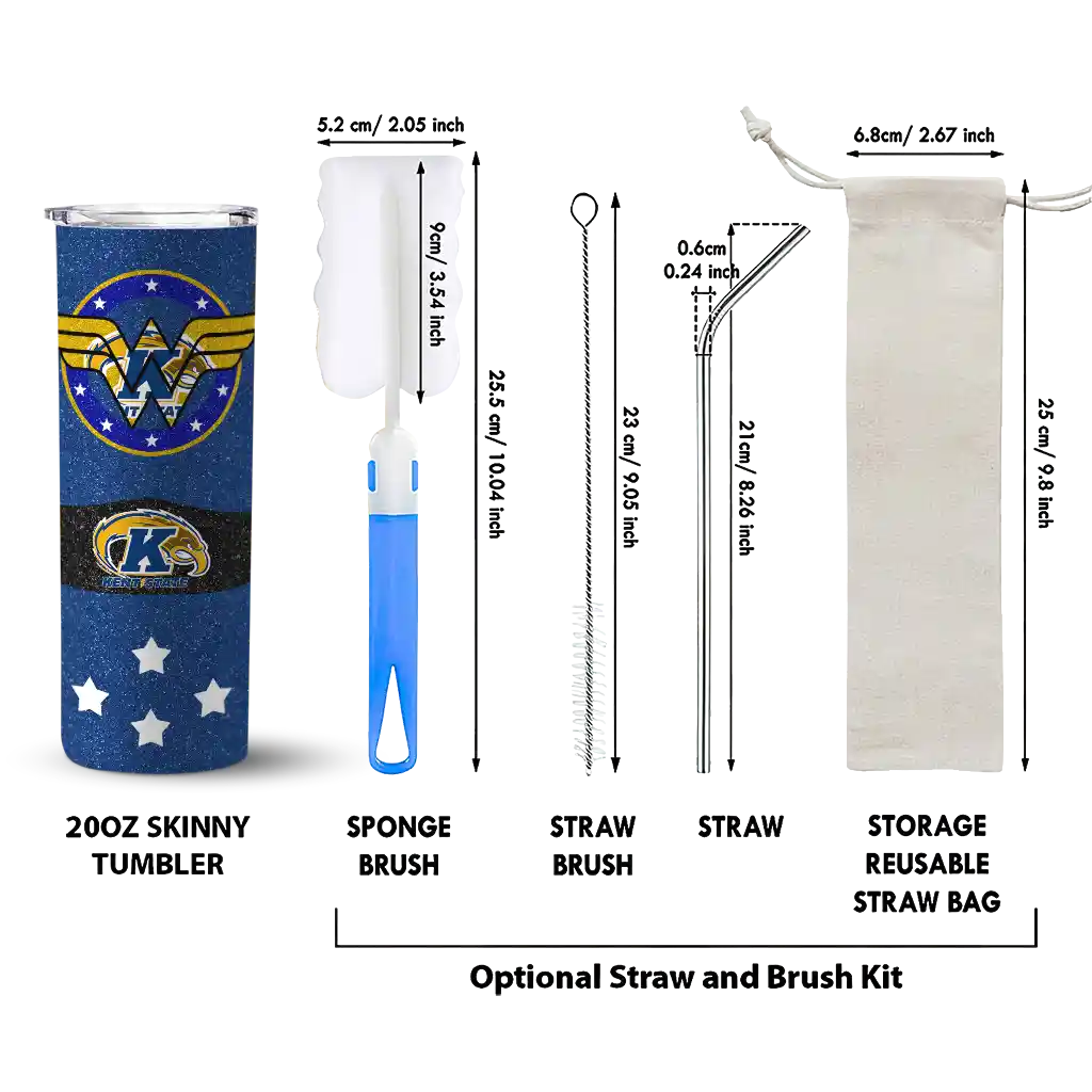 The Custom Kent State Golden Flashes Sparkle Lips Navy Blue Skinny Tumbler tumbler is the perfect way to stay refreshed while showing off your pride for Kent State Golden Flashes. With its double-wall insulation, your drinks stay at the right temperature for hours, whether you're enjoying a hot coffee or keeping your iced drink cold. What's inside? You’ll find 1 stainless steel tumbler, 1 clear lid, and 1 removable straw. It's the perfect blend of function and fan spirit! Ergonomically designed for comfort, made from durable stainless steel, and insulated to maintain your drink’s temperature, this tumbler is a must-have for any dedicated NCAA fan.