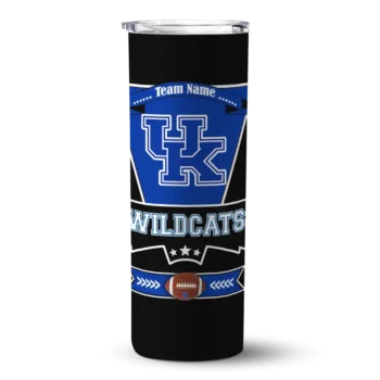 The Personalized Kentucky Wildcats Helmet Belt Blue Black Skinny Tumbler tumbler is the perfect way to stay refreshed while showing off your pride for Kentucky Wildcats. With its double-wall insulation, your drinks stay at the right temperature for hours, whether you're enjoying a hot coffee or keeping your iced drink cold. What's inside? You’ll find 1 stainless steel tumbler, 1 clear lid, and 1 removable straw. It's the perfect blend of function and fan spirit! Ergonomically designed for comfort, made from durable stainless steel, and insulated to maintain your drink’s temperature, this tumbler is a must-have for any dedicated NCAA fan.