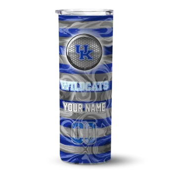 Kentucky Wildcats Tumblers are a great way to show your team spirit while keeping your drinks just the right temperature. Crafted with a durable stainless steel body, these tumblers are built to last and handle whatever your day throws at you. The lid, made from plastic and rubber, ensures a secure fit to help prevent spills whether you’re on the go or cheering from the sidelines.Thanks to effective double wall insulation, these tumblers keep your beverages hot or cold for longer periods, making them perfect for morning coffee before the game or a refreshing iced drink during halftime. Plus, if you want to make your tumbler truly yours, you can request to have your name and favorite number added, making it a personalized accessory that stands out at any NCAA event.Available now at NCAA Fan Pro, the Kentucky Wildcats Tumblers offer a practical and stylish way to support your team every day. Whether you’re buying one for yourself or as a gift for a fellow fan, these tumblers combine functionality with a clean, iconic design that represents your Wildcats pride.