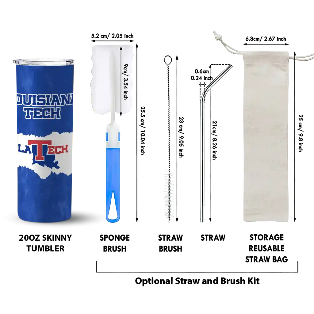The Customized LA Tech Torn Band Blue White Skinny Tumbler tumbler is the perfect way to stay refreshed while showing off your pride for LA Tech. With its double-wall insulation, your drinks stay at the right temperature for hours, whether you're enjoying a hot coffee or keeping your iced drink cold. What's inside? You’ll find 1 stainless steel tumbler, 1 clear lid, and 1 removable straw. It's the perfect blend of function and fan spirit! Ergonomically designed for comfort, made from durable stainless steel, and insulated to maintain your drink’s temperature, this tumbler is a must-have for any dedicated NCAA fan.