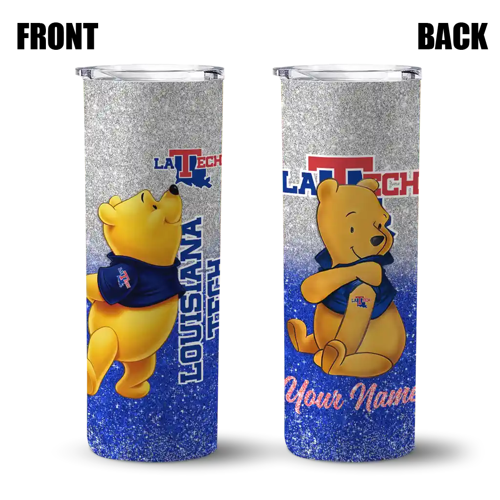 Personalized LA Tech Winnie the Pooh Blue Gray Skinny Tumbler