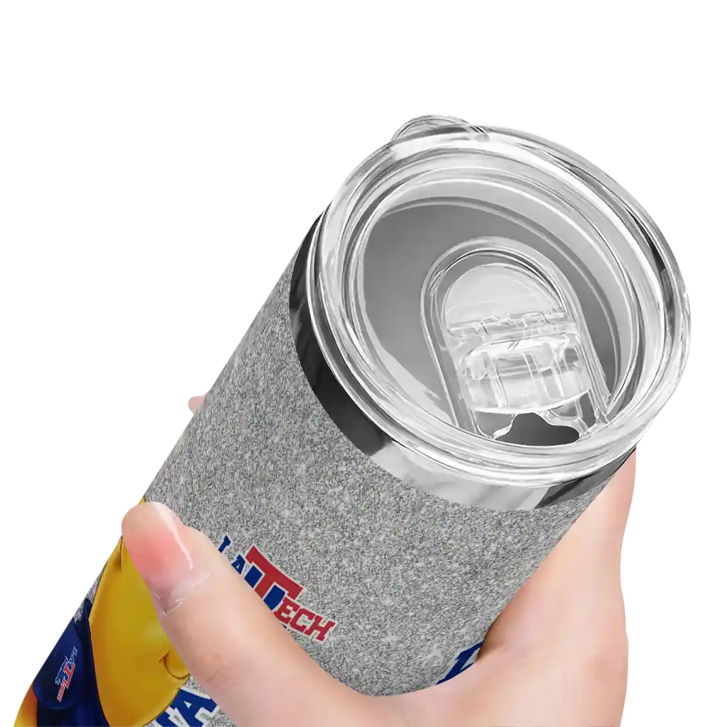 The Personalized LA Tech Helmet Clash Blue Skinny Tumbler tumbler is the perfect way to stay refreshed while showing off your pride for LA Tech. With its double-wall insulation, your drinks stay at the right temperature for hours, whether you're enjoying a hot coffee or keeping your iced drink cold. What's inside? You’ll find 1 stainless steel tumbler, 1 clear lid, and 1 removable straw. It's the perfect blend of function and fan spirit! Ergonomically designed for comfort, made from durable stainless steel, and insulated to maintain your drink’s temperature, this tumbler is a must-have for any dedicated NCAA fan.