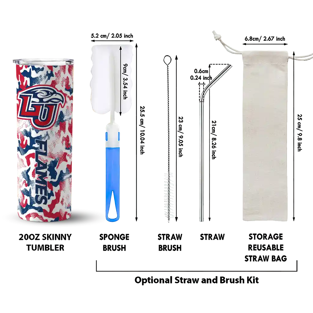 The Personalized Liberty Flames Claw Marks Red White Skinny Tumbler tumbler is the perfect way to stay refreshed while showing off your pride for Liberty Flames. With its double-wall insulation, your drinks stay at the right temperature for hours, whether you're enjoying a hot coffee or keeping your iced drink cold. What's inside? You’ll find 1 stainless steel tumbler, 1 clear lid, and 1 removable straw. It's the perfect blend of function and fan spirit! Ergonomically designed for comfort, made from durable stainless steel, and insulated to maintain your drink’s temperature, this tumbler is a must-have for any dedicated NCAA fan.