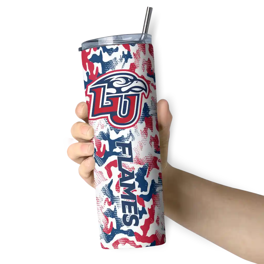 Made from premium stainless steel, this tumbler is built to last. The bold Liberty Flames logo proudly represents your team, while the ergonomic design fits comfortably in your hand for easy carrying. Whether you're cheering in the stands, catching up with friends, or just out and about, this tumbler is the perfect fan accessory, combining style and function to keep you hydrated in true NCAA spirit.