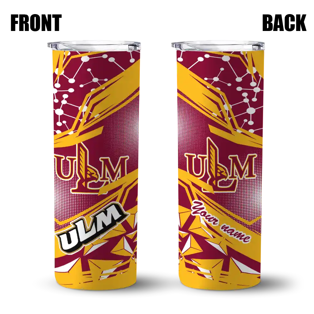 The Personalized Louisiana-Monroe Warhawks Helmet Clash Red Skinny Tumbler tumbler is the perfect way to stay refreshed while showing off your pride for Louisiana-Monroe Warhawks. With its double-wall insulation, your drinks stay at the right temperature for hours, whether you're enjoying a hot coffee or keeping your iced drink cold. What's inside? You’ll find 1 stainless steel tumbler, 1 clear lid, and 1 removable straw. It's the perfect blend of function and fan spirit! Ergonomically designed for comfort, made from durable stainless steel, and insulated to maintain your drink’s temperature, this tumbler is a must-have for any dedicated NCAA fan.