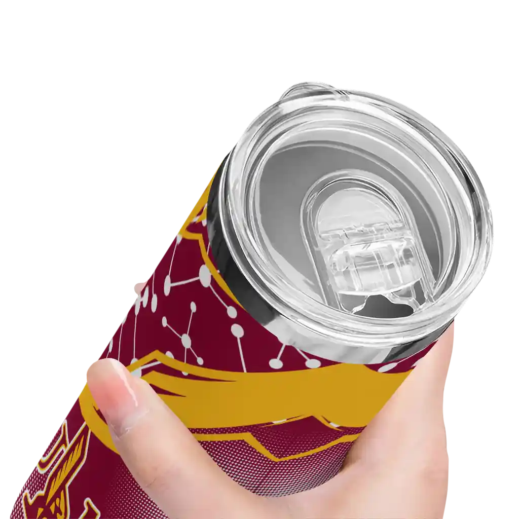 The Customized Louisiana-Monroe Warhawks Chevron Patch Red Skinny Tumbler tumbler is the perfect way to stay refreshed while showing off your pride for Louisiana-Monroe Warhawks. With its double-wall insulation, your drinks stay at the right temperature for hours, whether you're enjoying a hot coffee or keeping your iced drink cold. What's inside? You’ll find 1 stainless steel tumbler, 1 clear lid, and 1 removable straw. It's the perfect blend of function and fan spirit! Ergonomically designed for comfort, made from durable stainless steel, and insulated to maintain your drink’s temperature, this tumbler is a must-have for any dedicated NCAA fan.