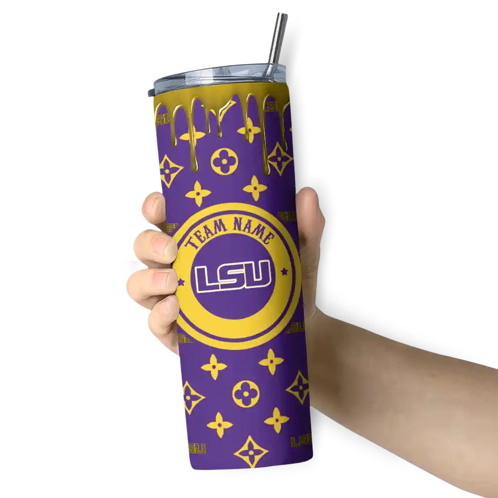 The Customized LSU Tigers Stacked Diamond Purple Skinny Tumbler tumbler is the perfect way to stay refreshed while showing off your pride for LSU Tigers. With its double-wall insulation, your drinks stay at the right temperature for hours, whether you're enjoying a hot coffee or keeping your iced drink cold. What's inside? You’ll find 1 stainless steel tumbler, 1 clear lid, and 1 removable straw. It's the perfect blend of function and fan spirit! Ergonomically designed for comfort, made from durable stainless steel, and insulated to maintain your drink’s temperature, this tumbler is a must-have for any dedicated NCAA fan.