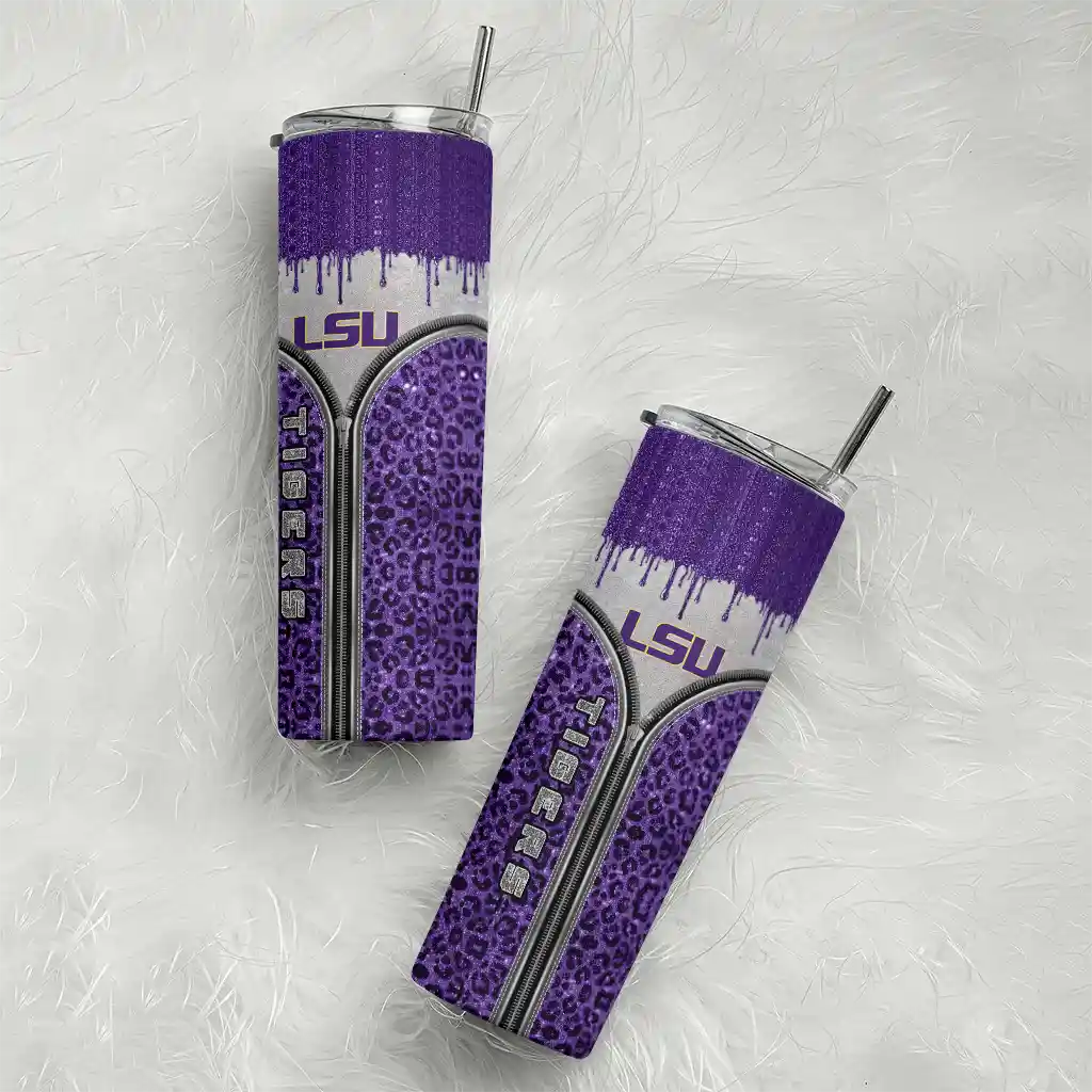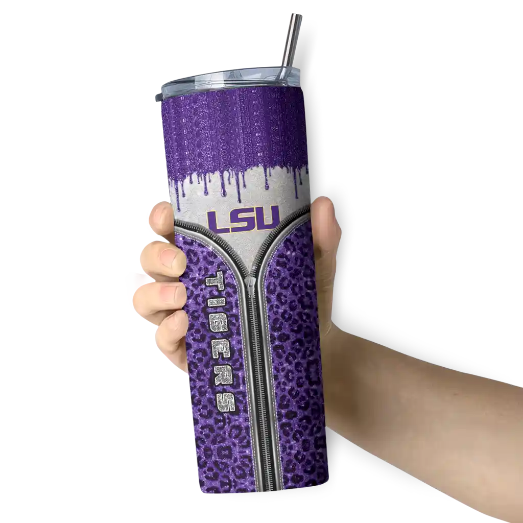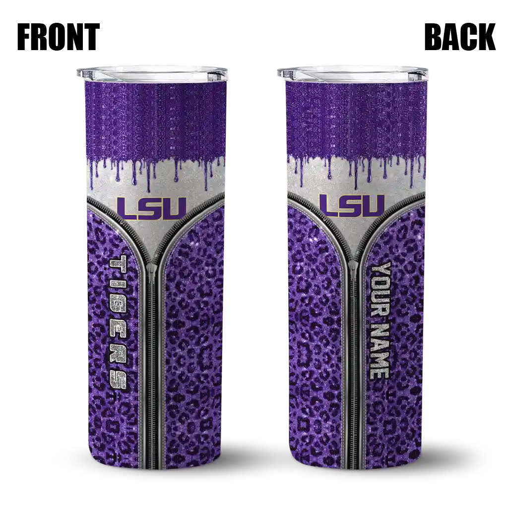 No question about it—the Customized LSU Tigers Leopard Zipper Purple Curved Tumbler is the ultimate way to stay refreshed while rocking your LSU Tigers pride. From the stadium to your tailgate, or just chilling at home, this sleek tumbler makes sure you stay hydrated in style. What’s in the box? A stainless steel tumbler, clear lid, and removable straw—all the essentials for keeping your favorite drinks on point!